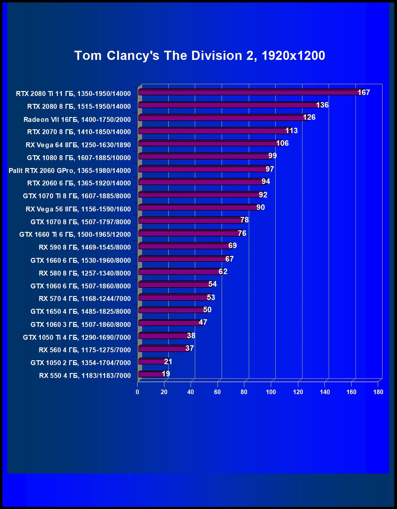 | 16 | GTX 1070 Ti 8 ГБ, 1607—1885/8000 | 214 | 600 | 28 000 |