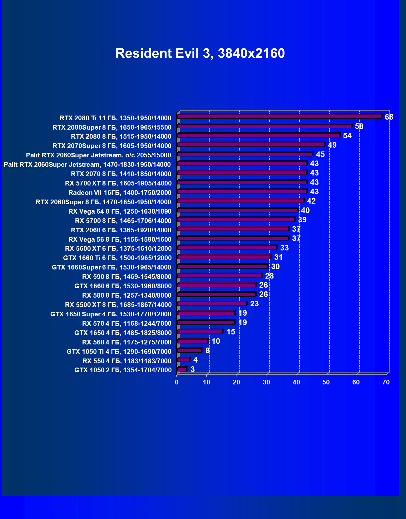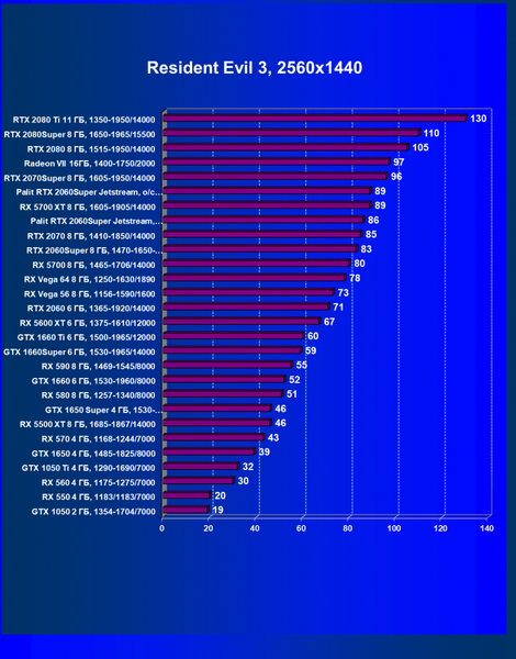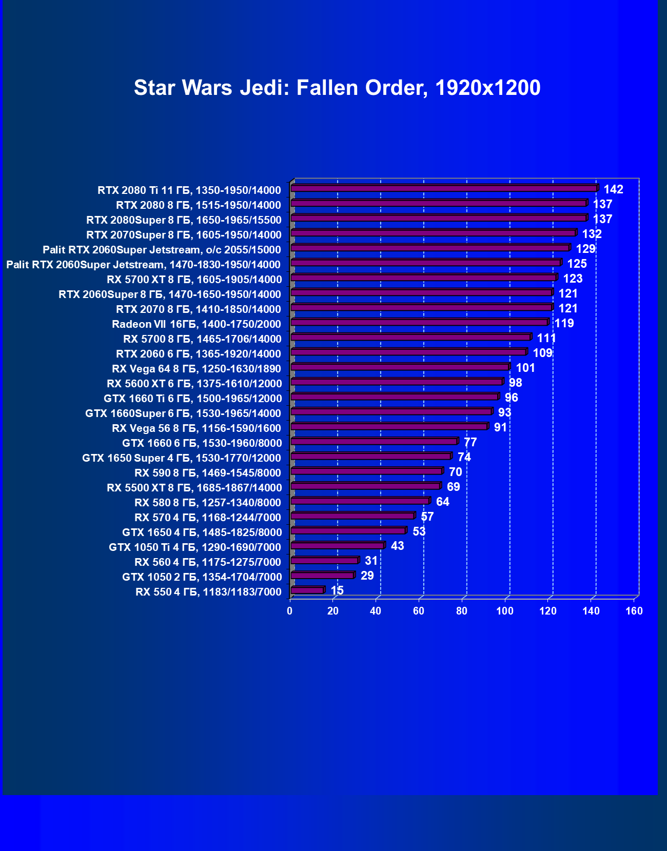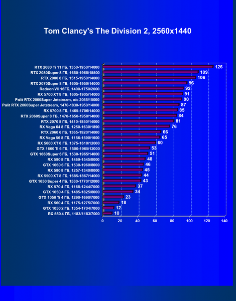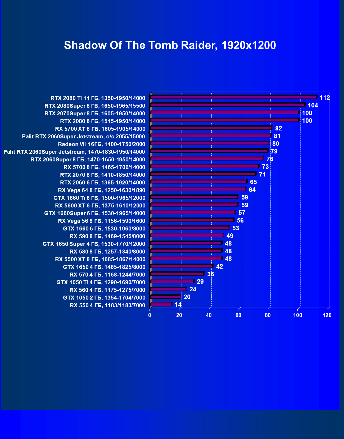 | 08 | RX 5700 XT 8 ГБ, 1605—1905/14000 | 1080 | 348 | 31 000 |