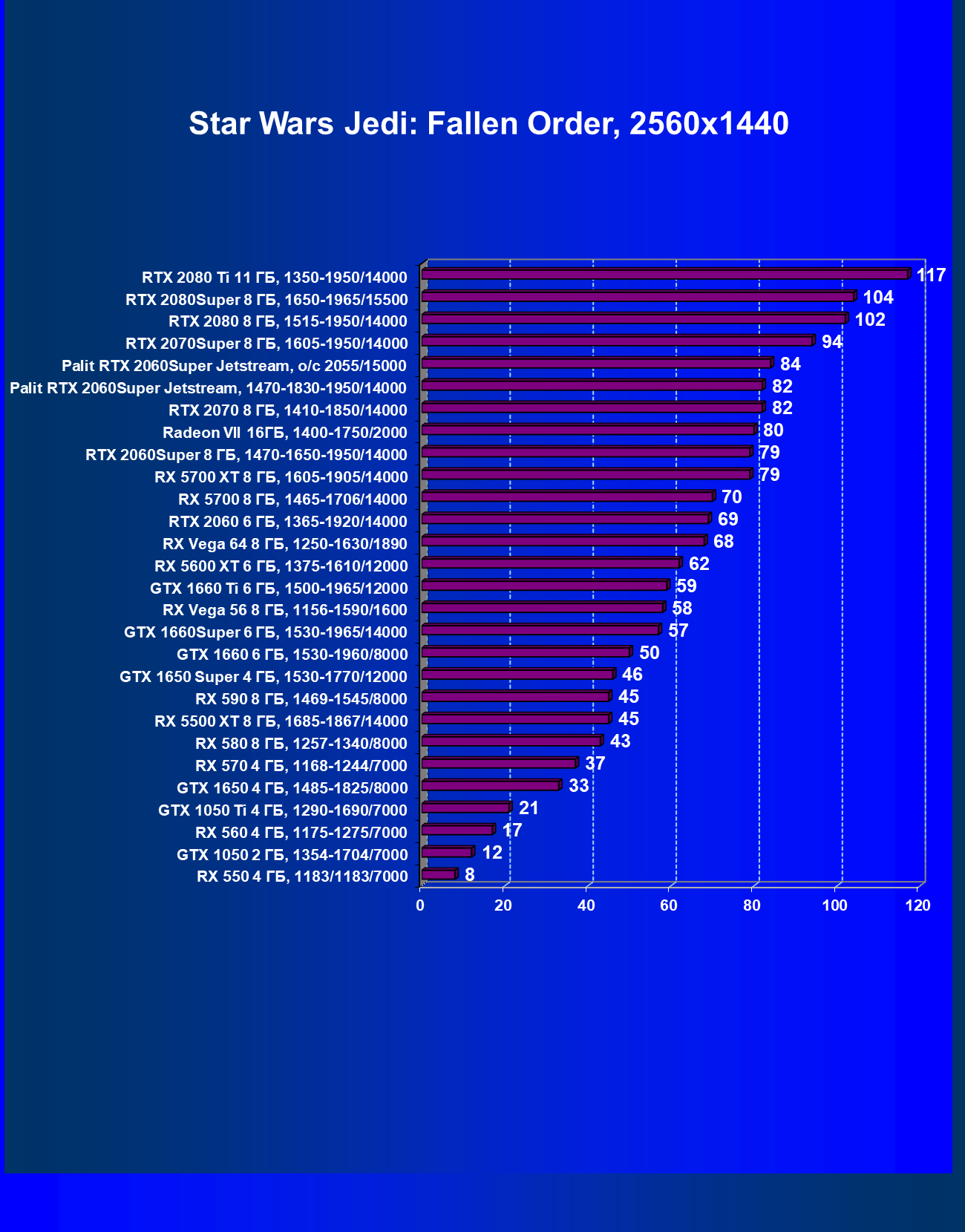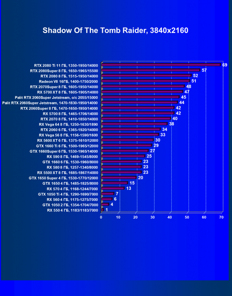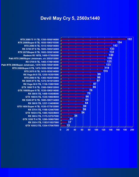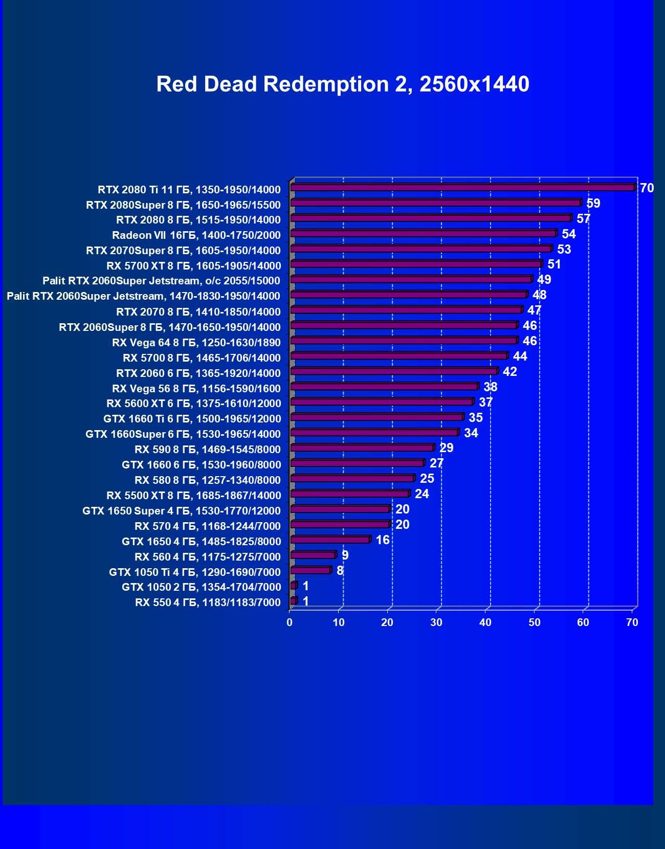 | 19 | RTX 2070 8 ГБ, 1410—1850/14000 | 304 | 1050 | 34 500 |