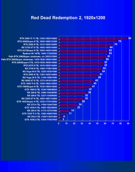 | 12 | Palit RTX 2060 Super Jetstream, 1470—1830—1950/14000 | 316 | 1090 | 34 500 |