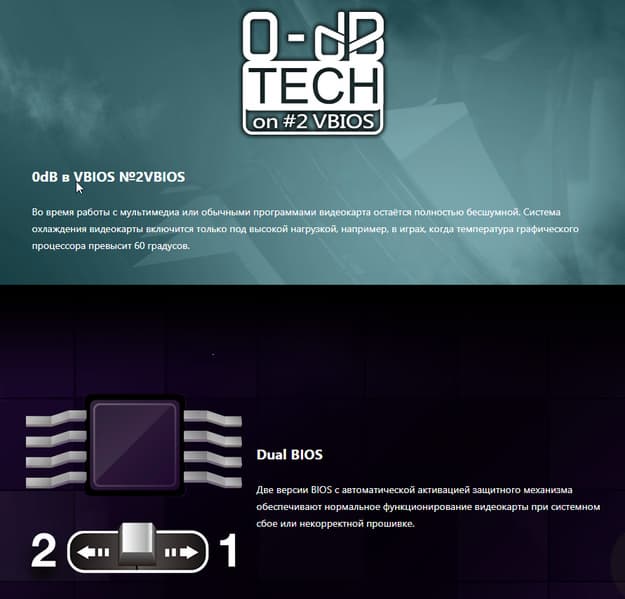 Версии BIOS имеют одинаковый набор частот работы, но в одном варианте вентиляторы останавливаются в случае простоя карты, а в другом — нет.