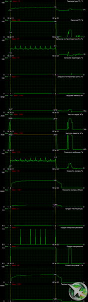 В режиме максимальной нагрузки в 3D температура достигала 69 °C. Вентиляторы при этом раскручивались до 1380 оборотов в минуту, шум вырастал до 28,3 дБА, это тихо.