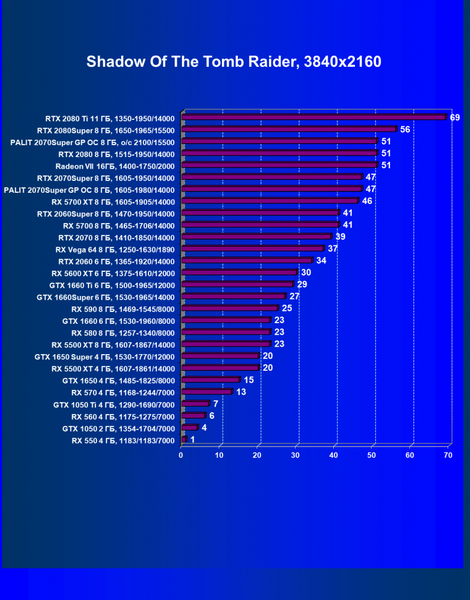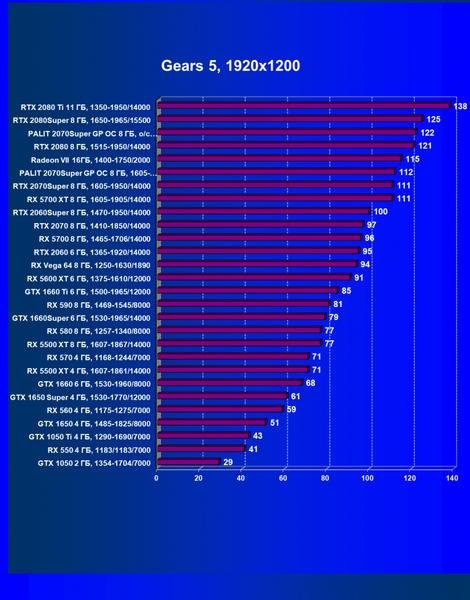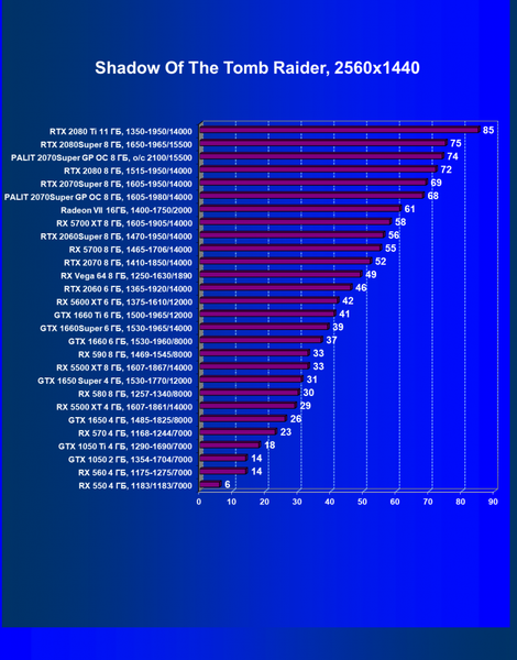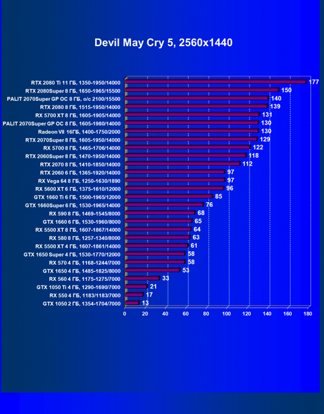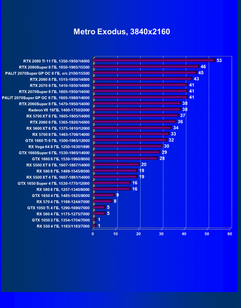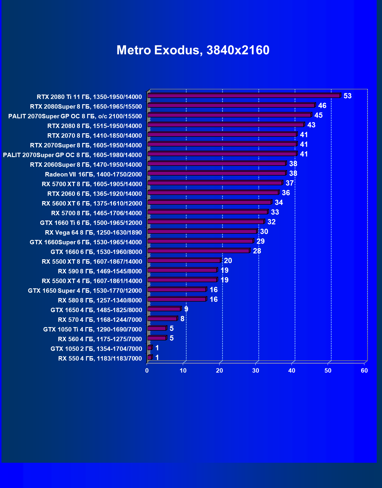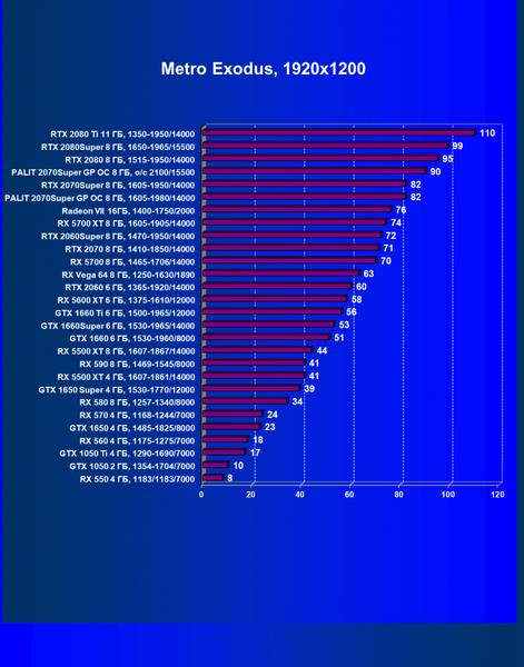 | 08 | RX 5700 XT 8 ГБ, 1605—1905/14000 | 1090 | 404 | 27 000 |