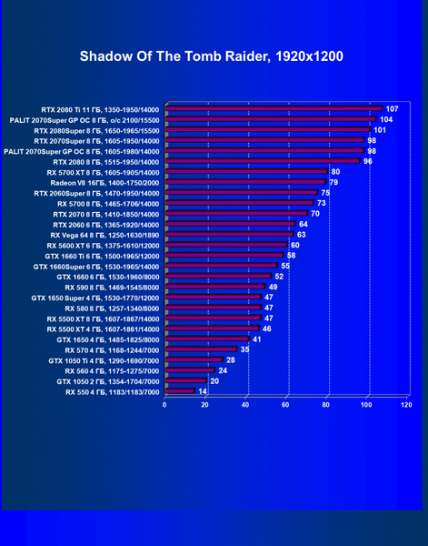| 06 | RTX 2070 Super 8 ГБ, 1605—1950/14000 | 1220 | 358 | 34 100 |
