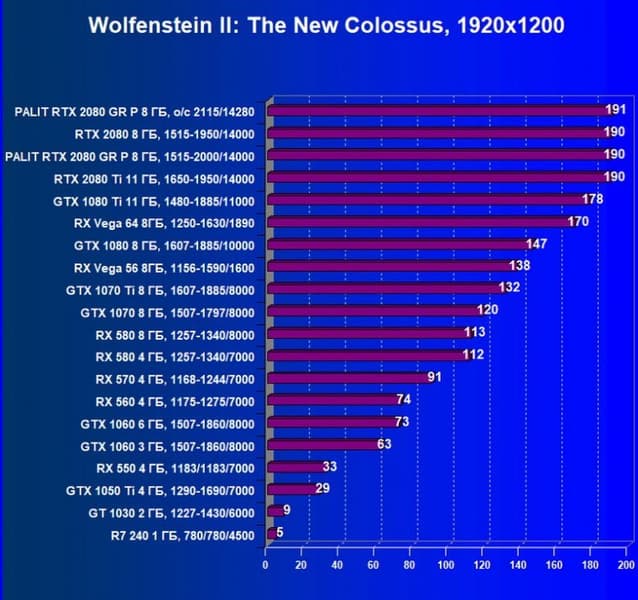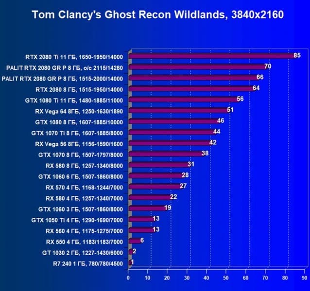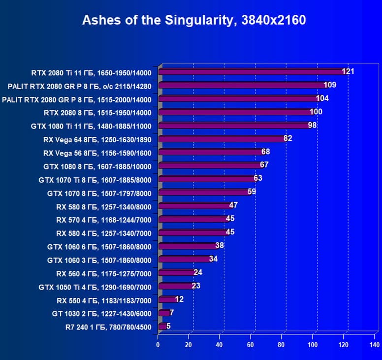 | 14 | GTX 1080 Ti 11 ГБ, 1480—1885/11000 | 718 | 4020 | 56 000 |