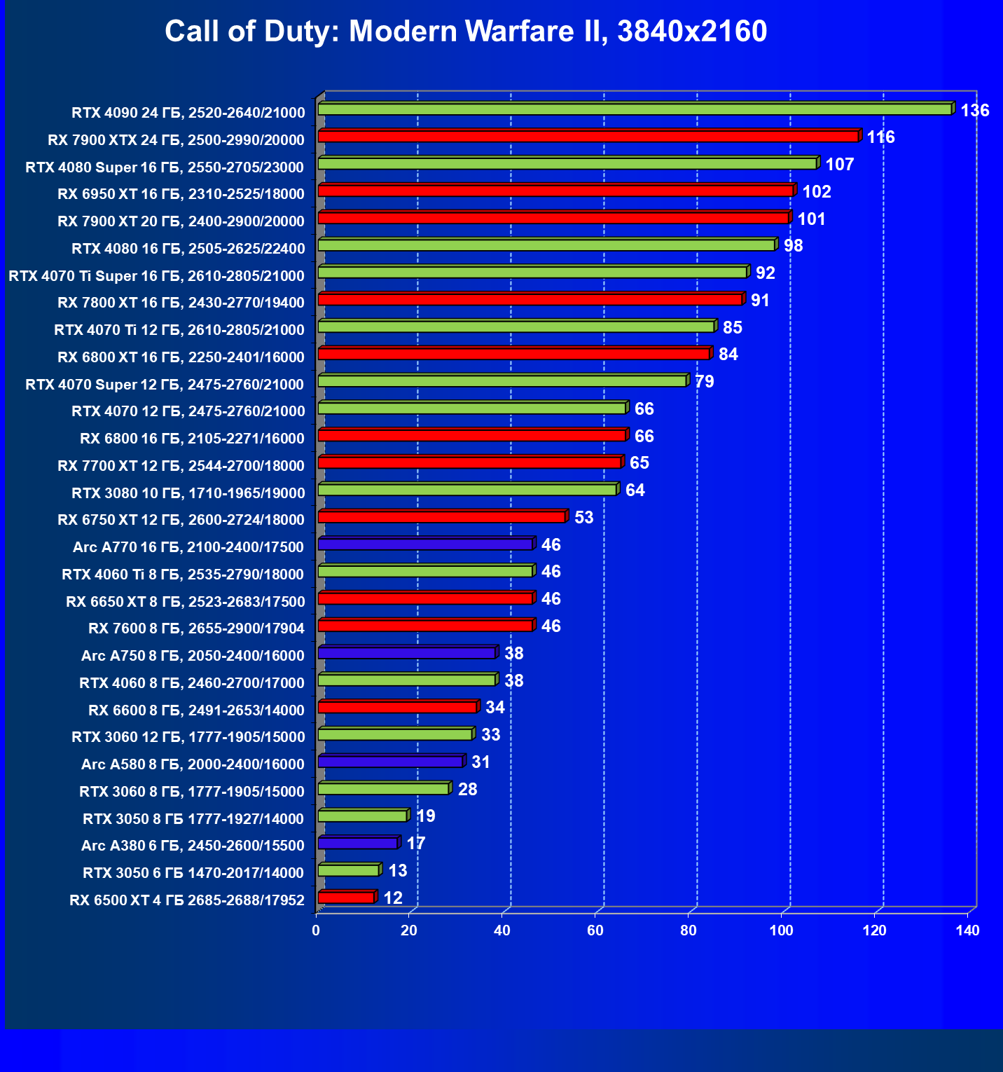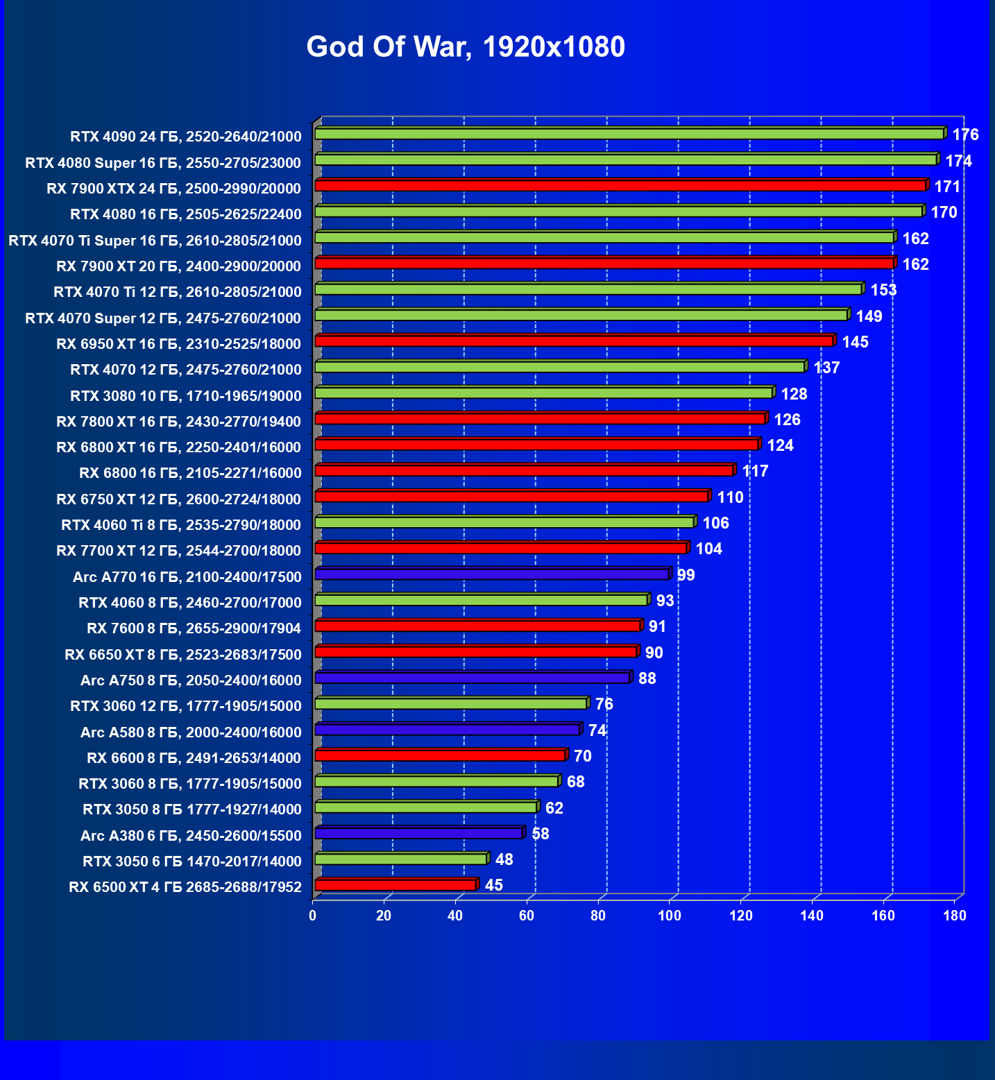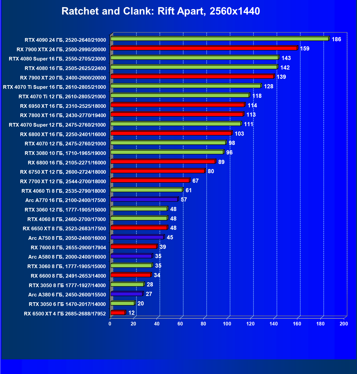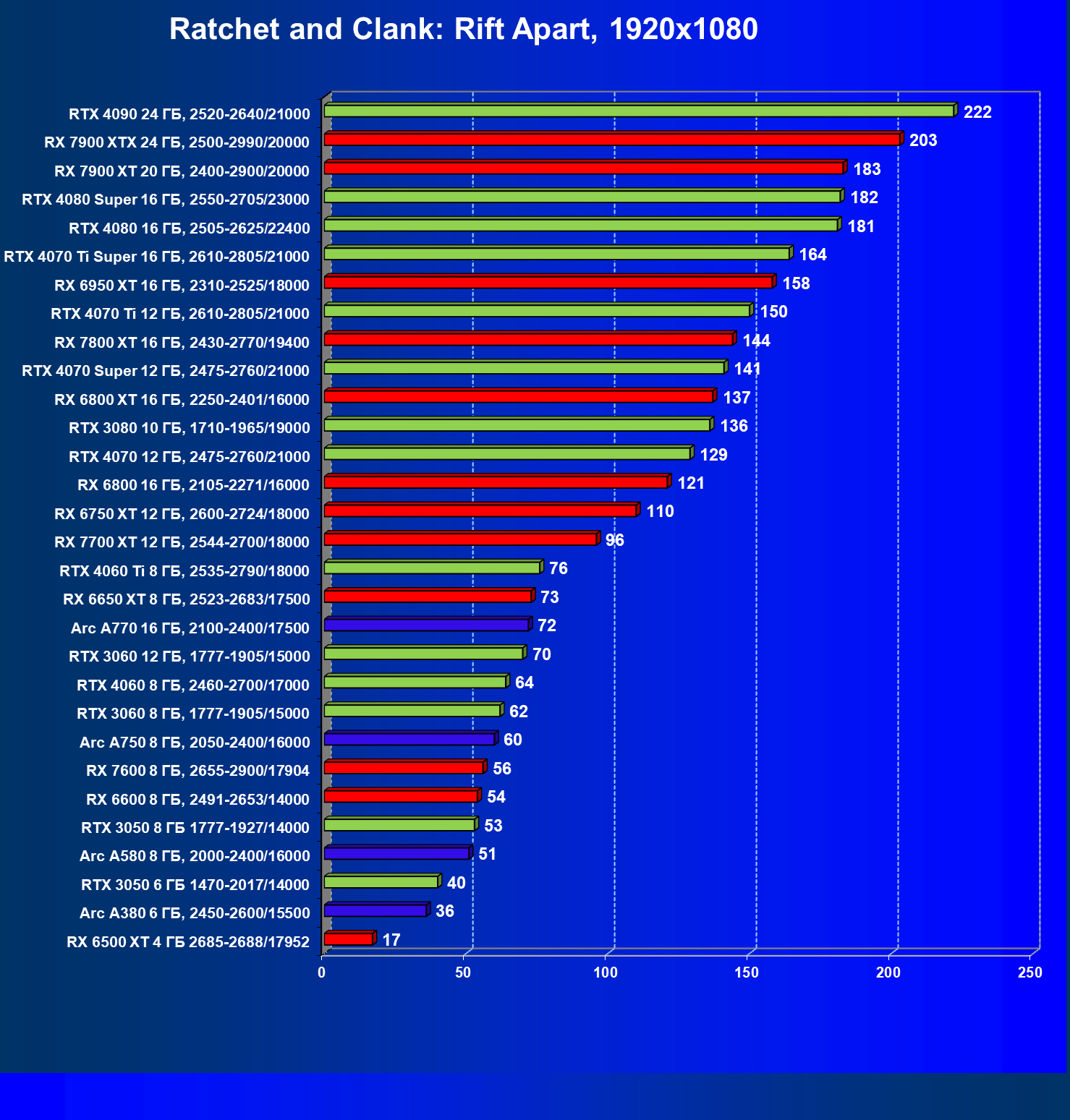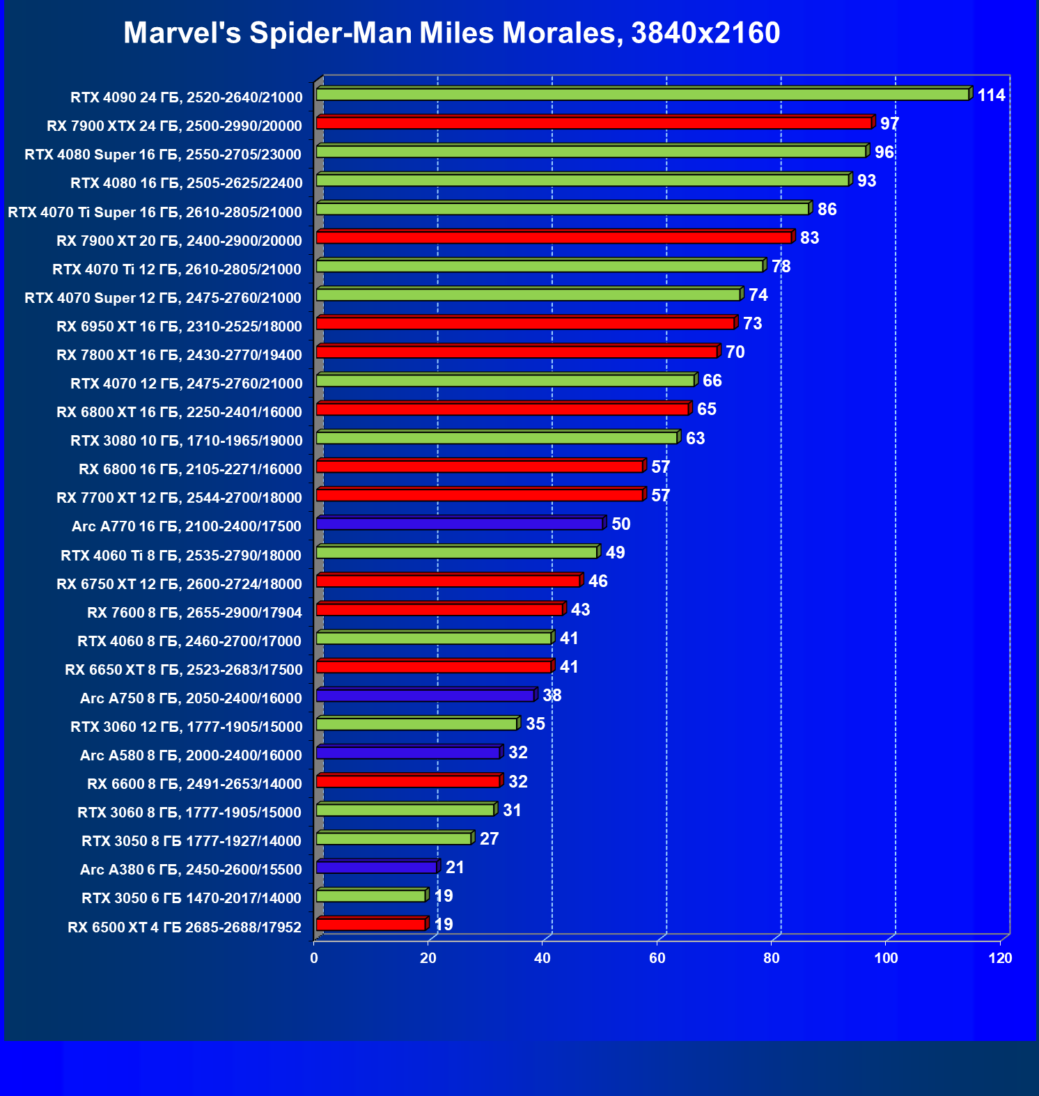 | 28 | Arc A380 6 ГБ, 2450—2600/15500 | 167 | 93 | 18 000 |