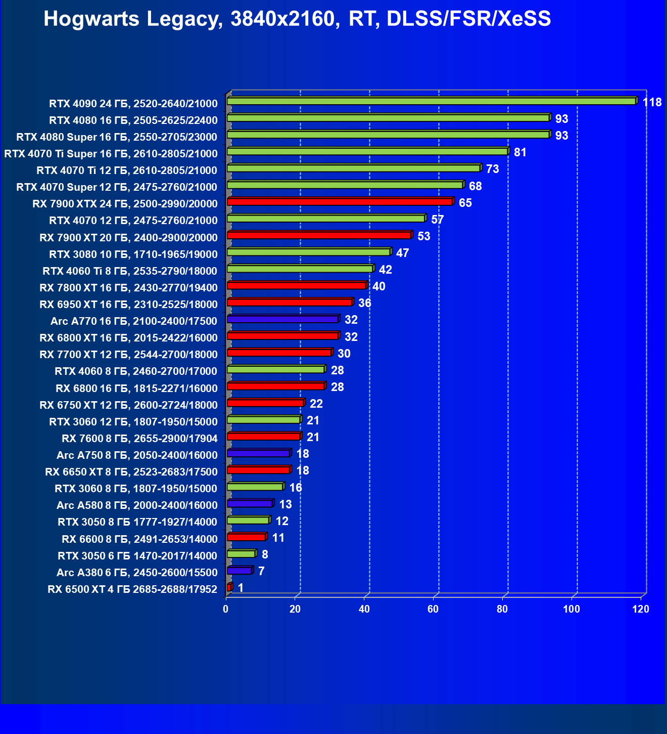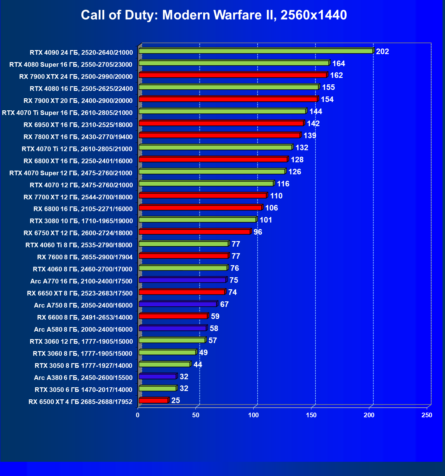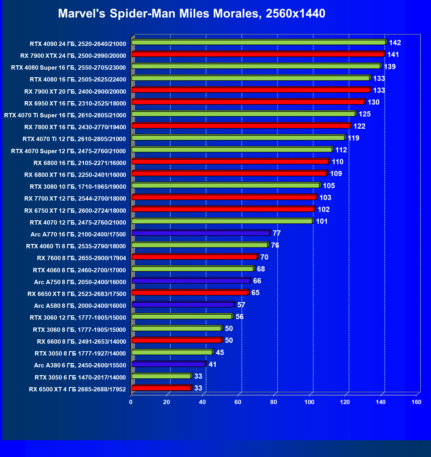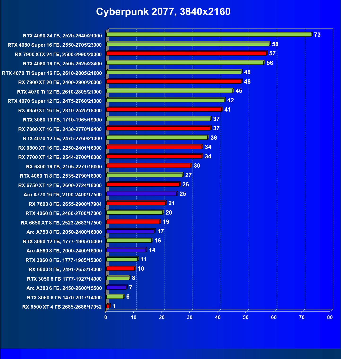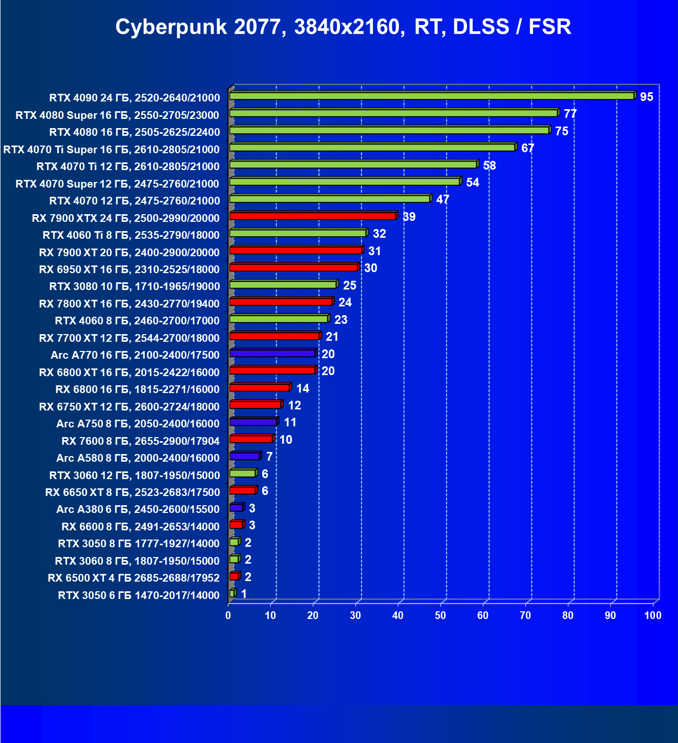 | 28 | Arc A380 6 ГБ, 2450—2600/15500 | 167 | 93 | 18 000 |