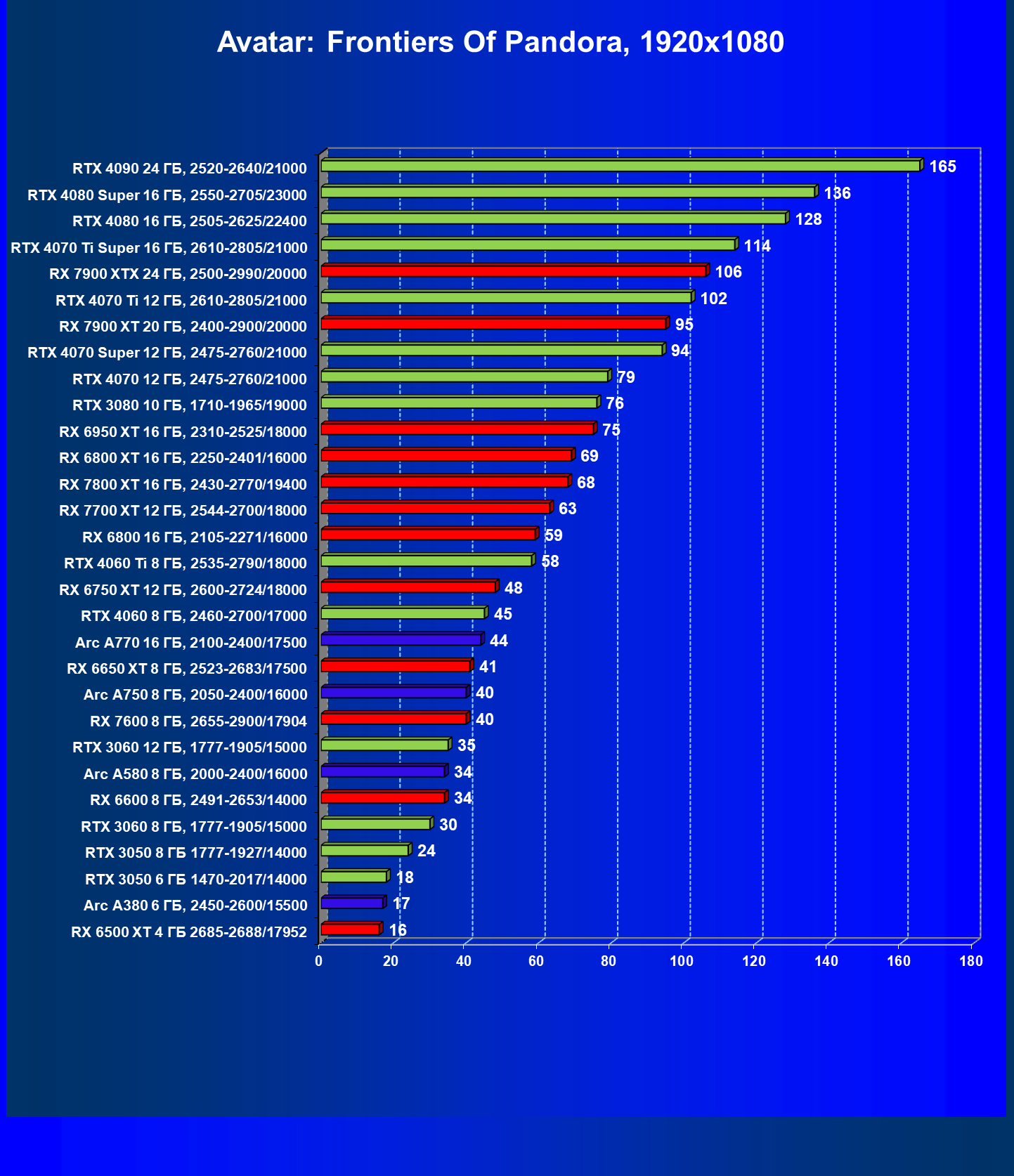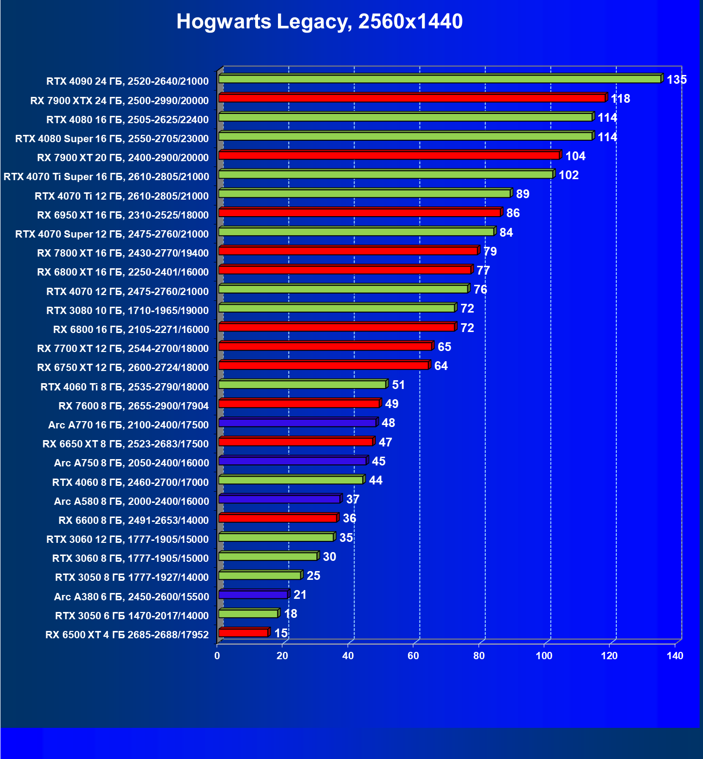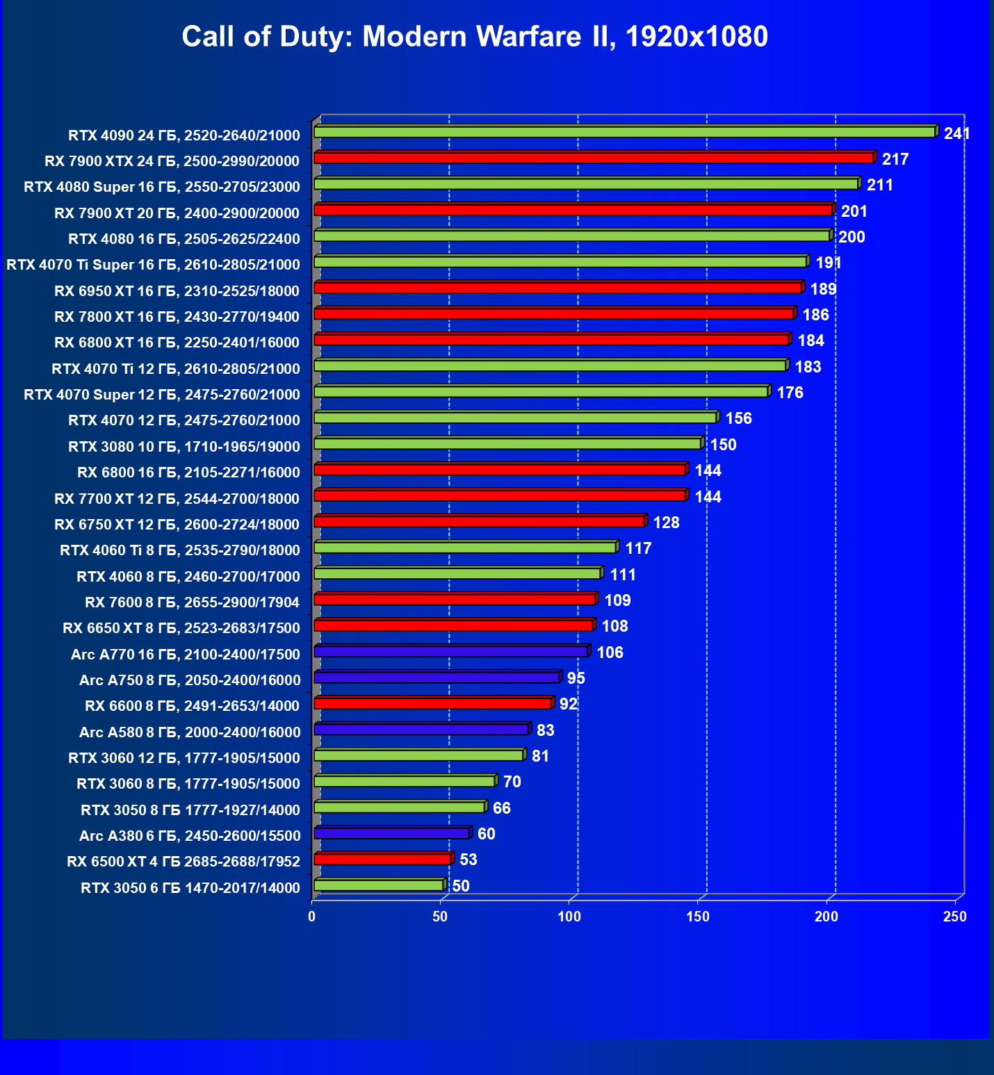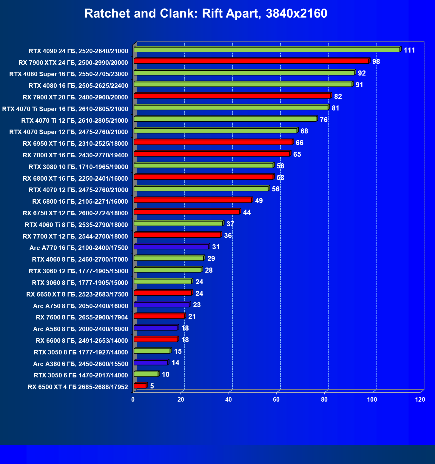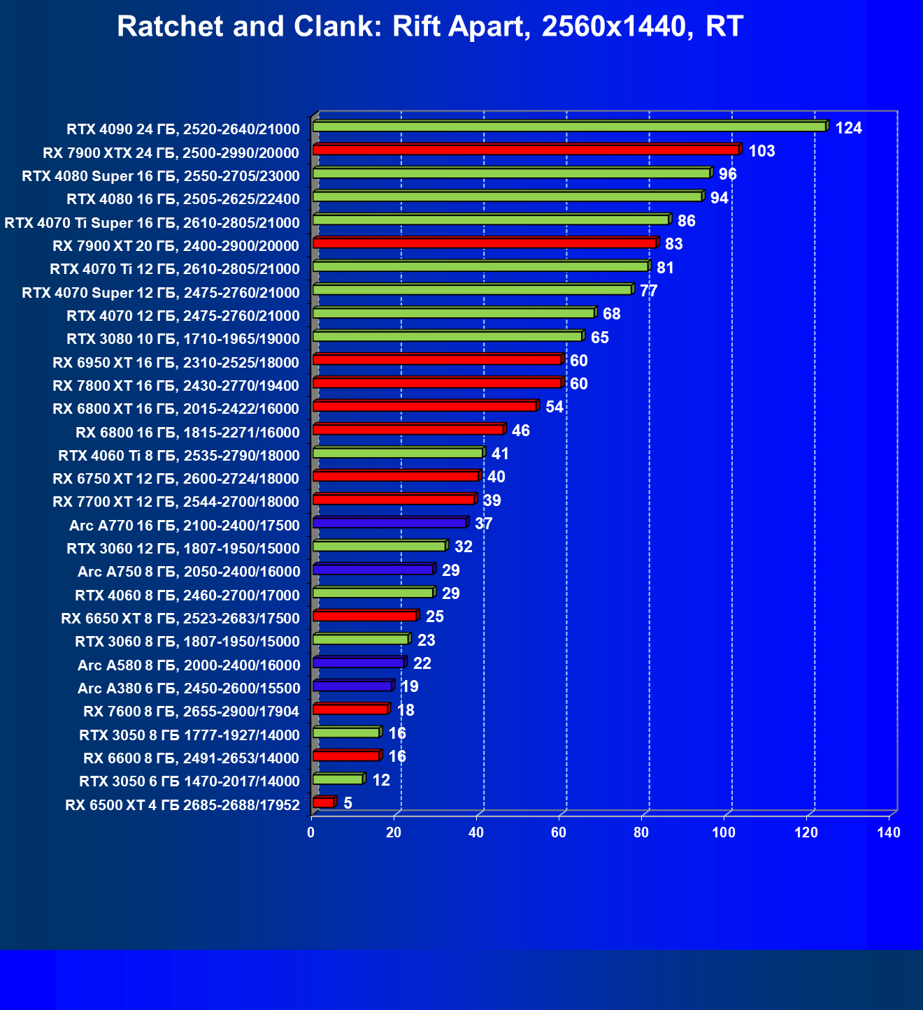 | 28 | Arc A380 6 ГБ, 2450—2600/15500 | 167 | 93 | 18 000 |
