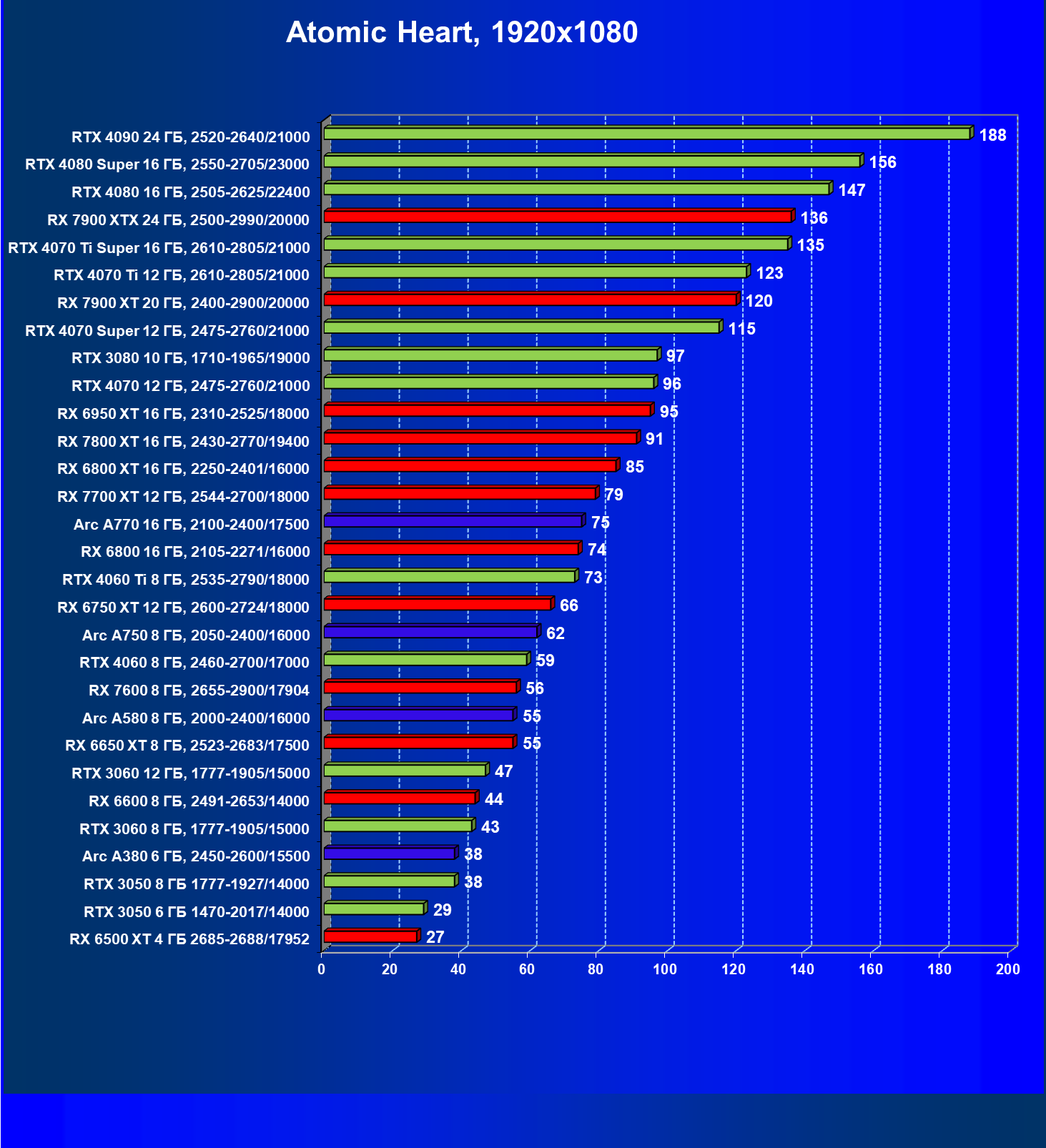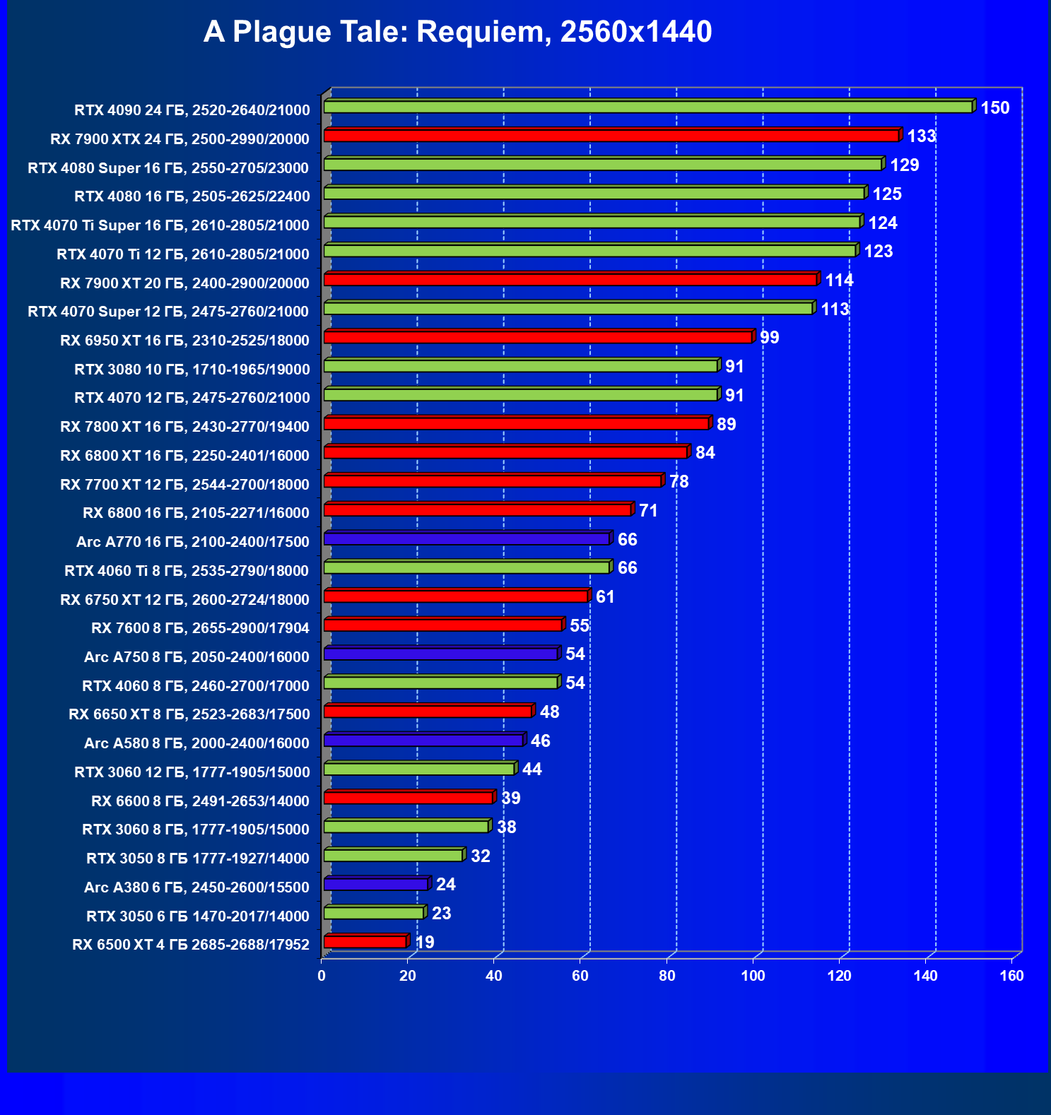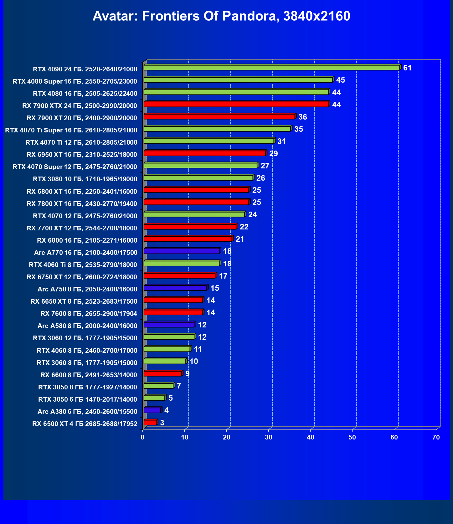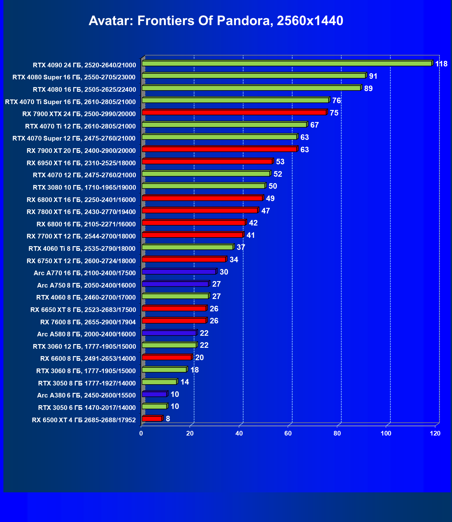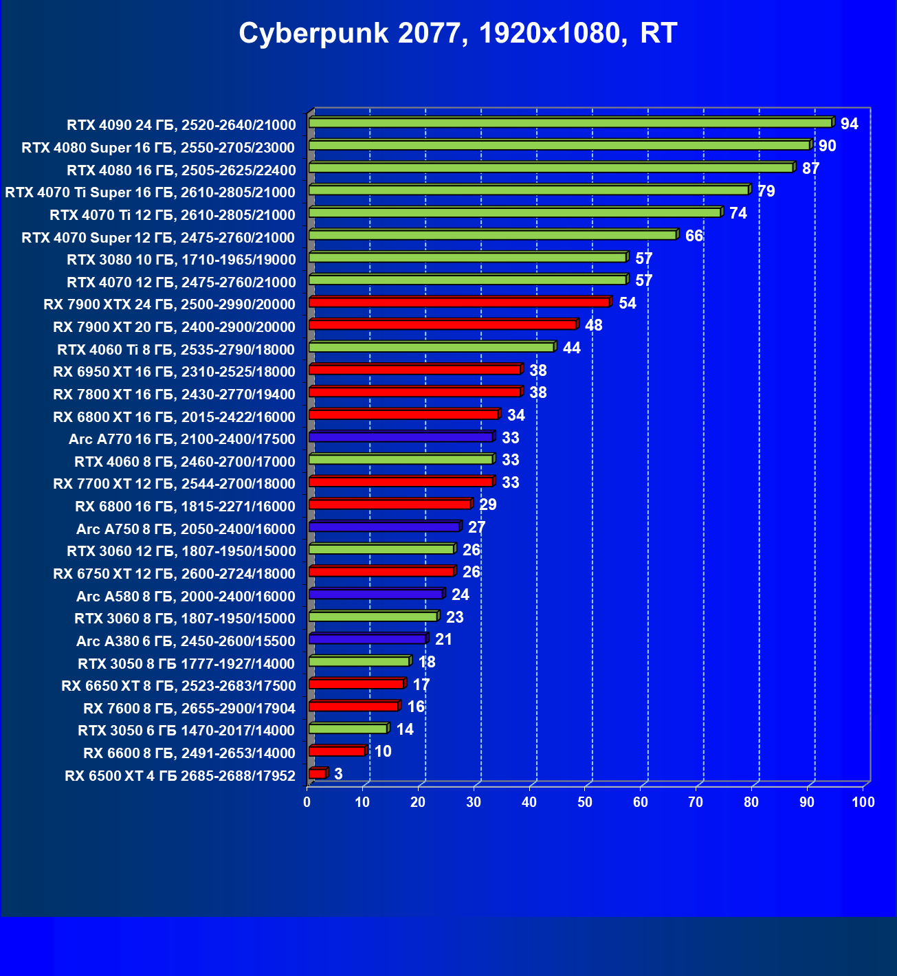| 28 | Arc A380 6 ГБ, 2450—2600/15500 | 167 | 93 | 18 000 |