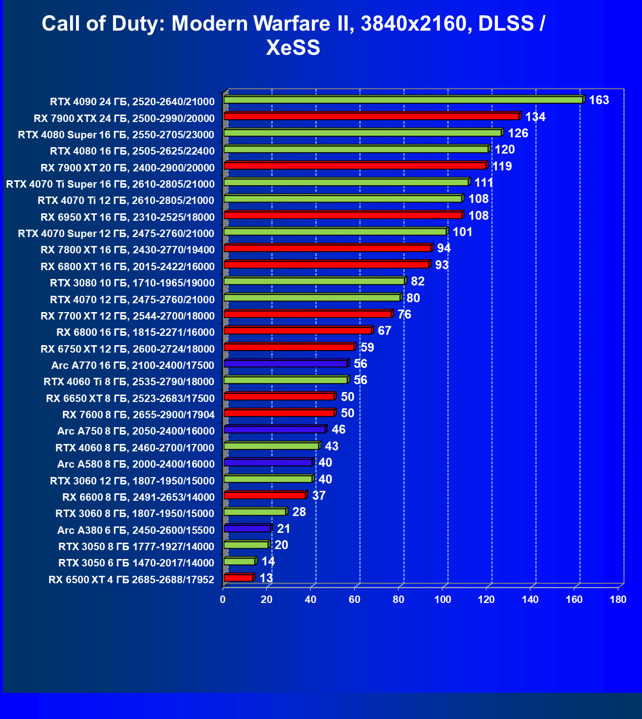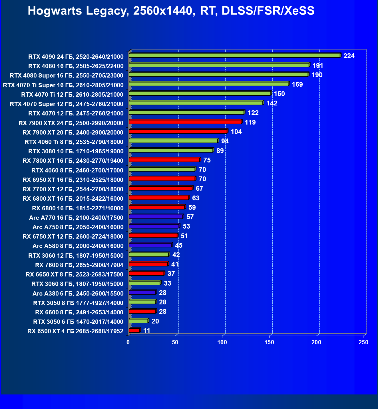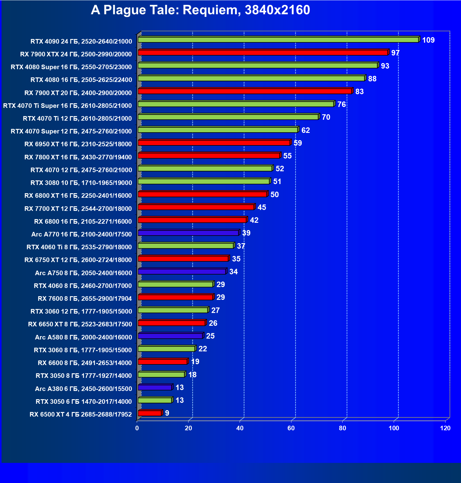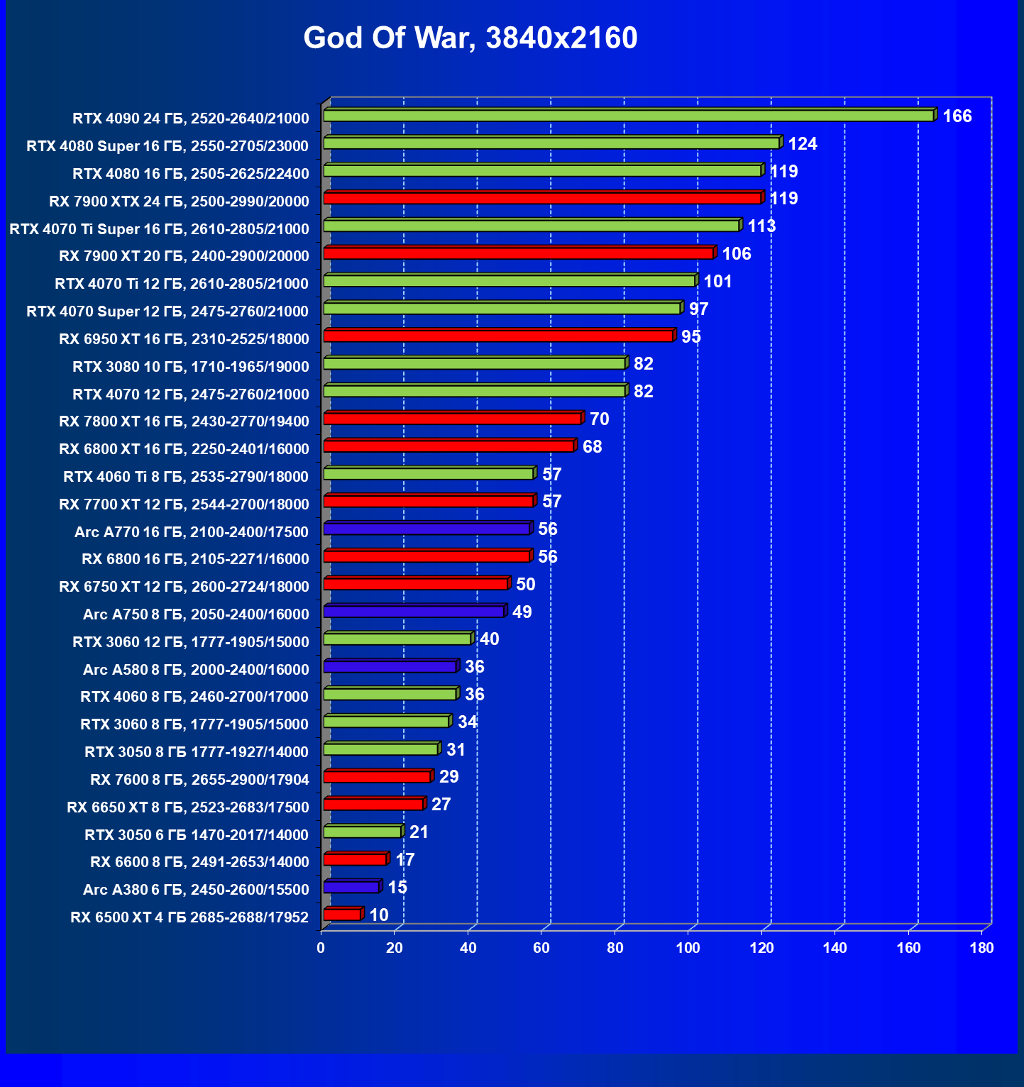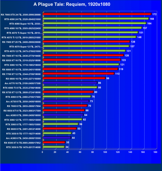 | 28 | Arc A380 6 ГБ, 2450—2600/15500 | 167 | 93 | 18 000 |