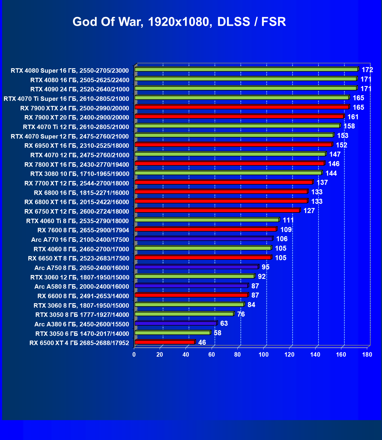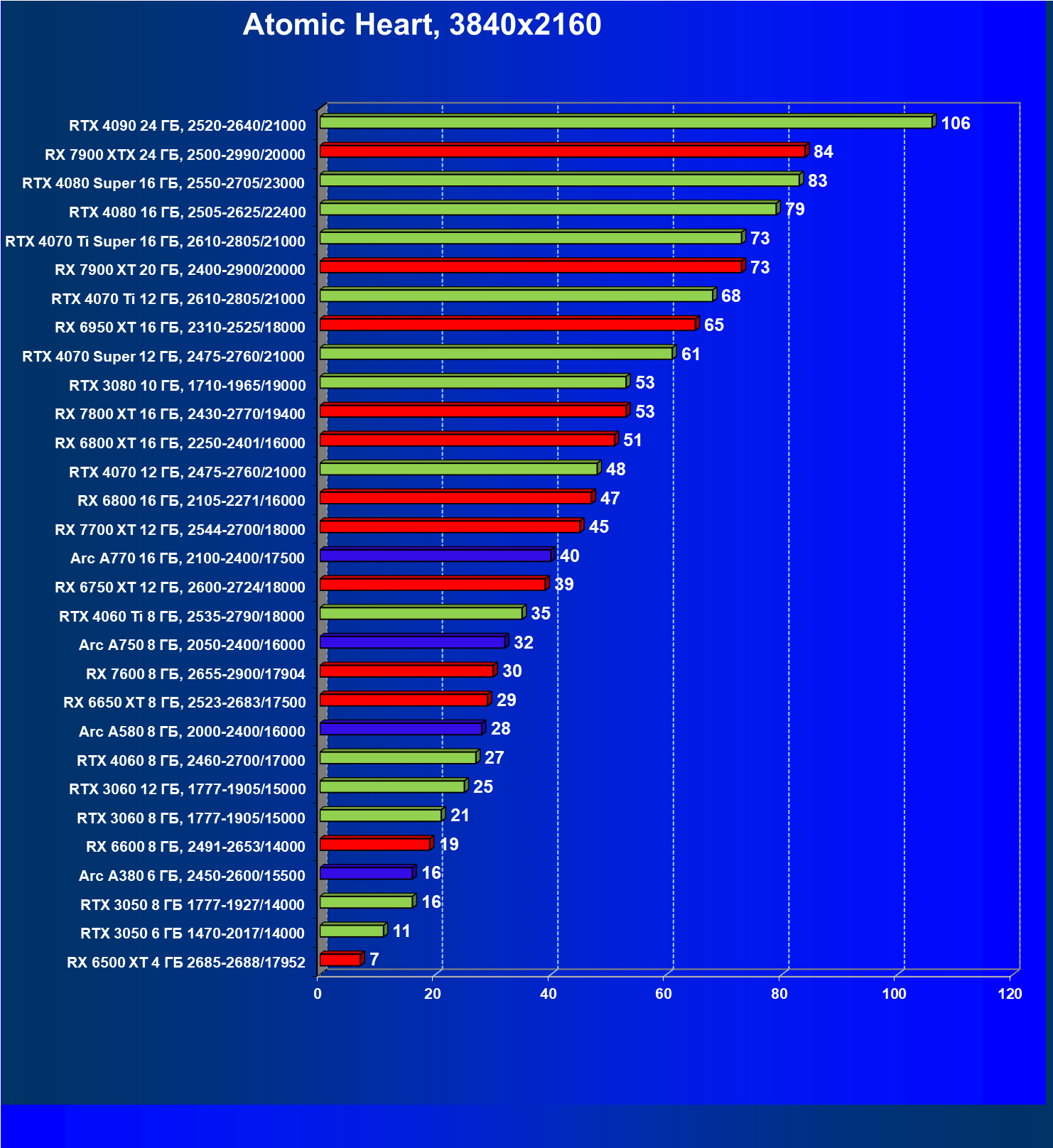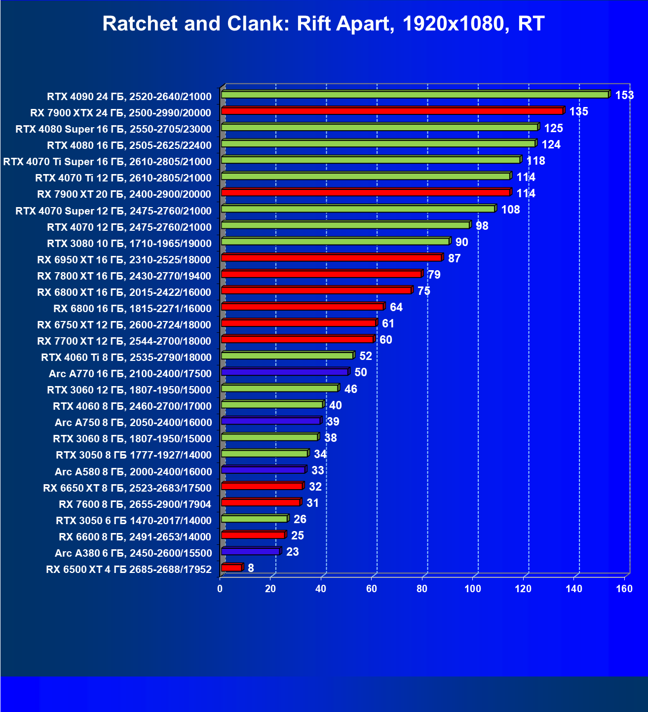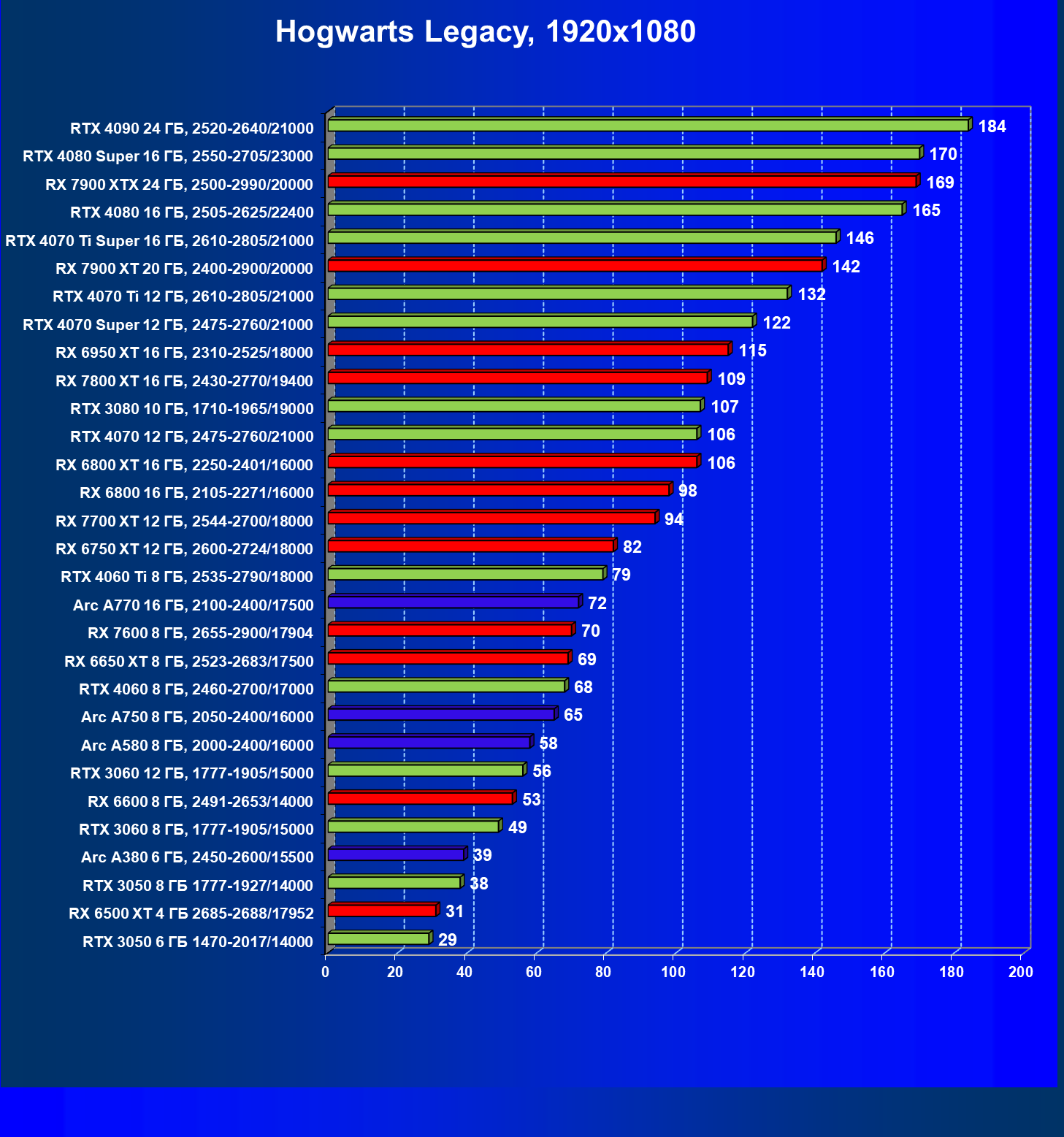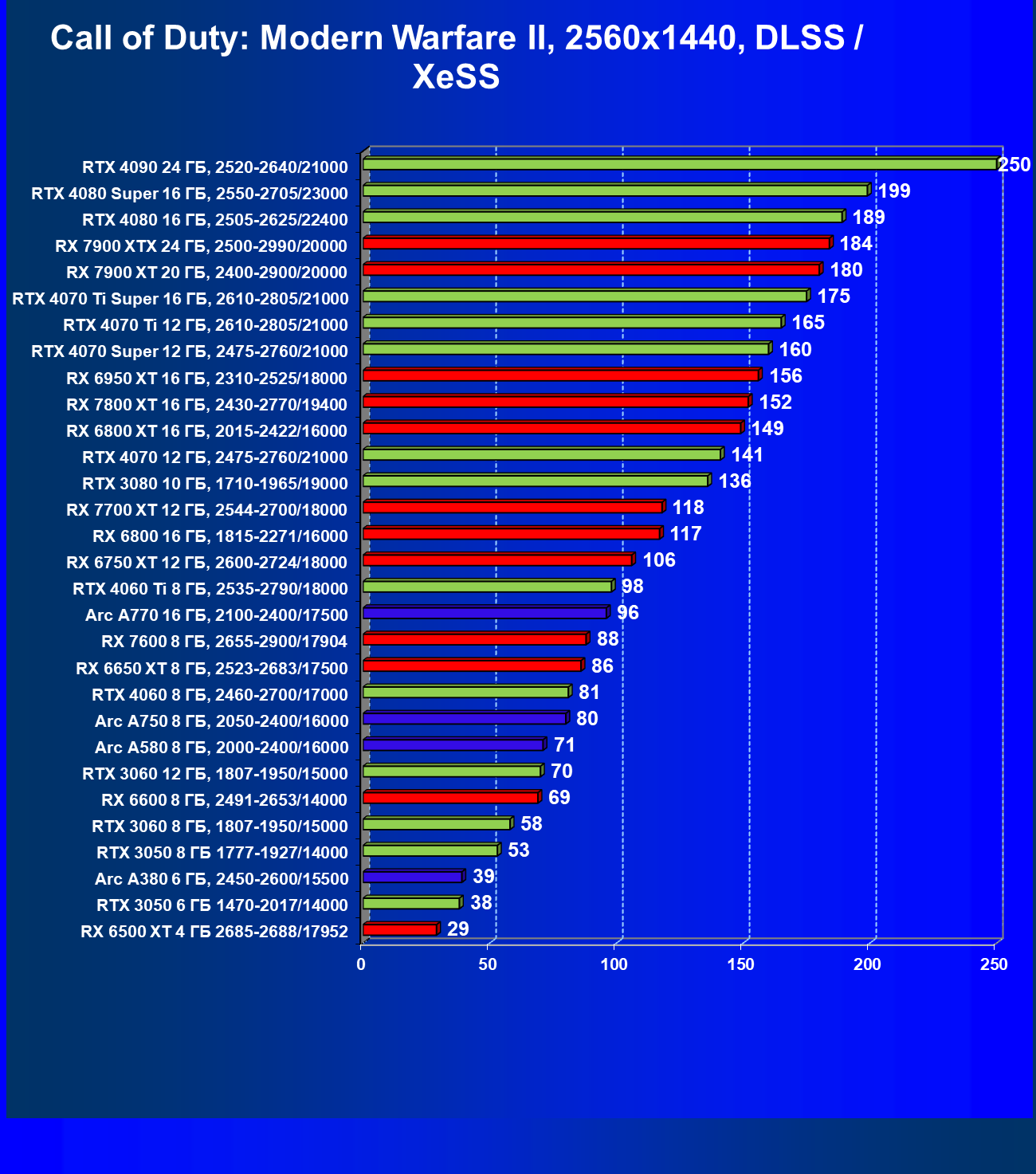 | 28 | Arc A380 6 ГБ, 2450—2600/15500 | 167 | 93 | 18 000 |