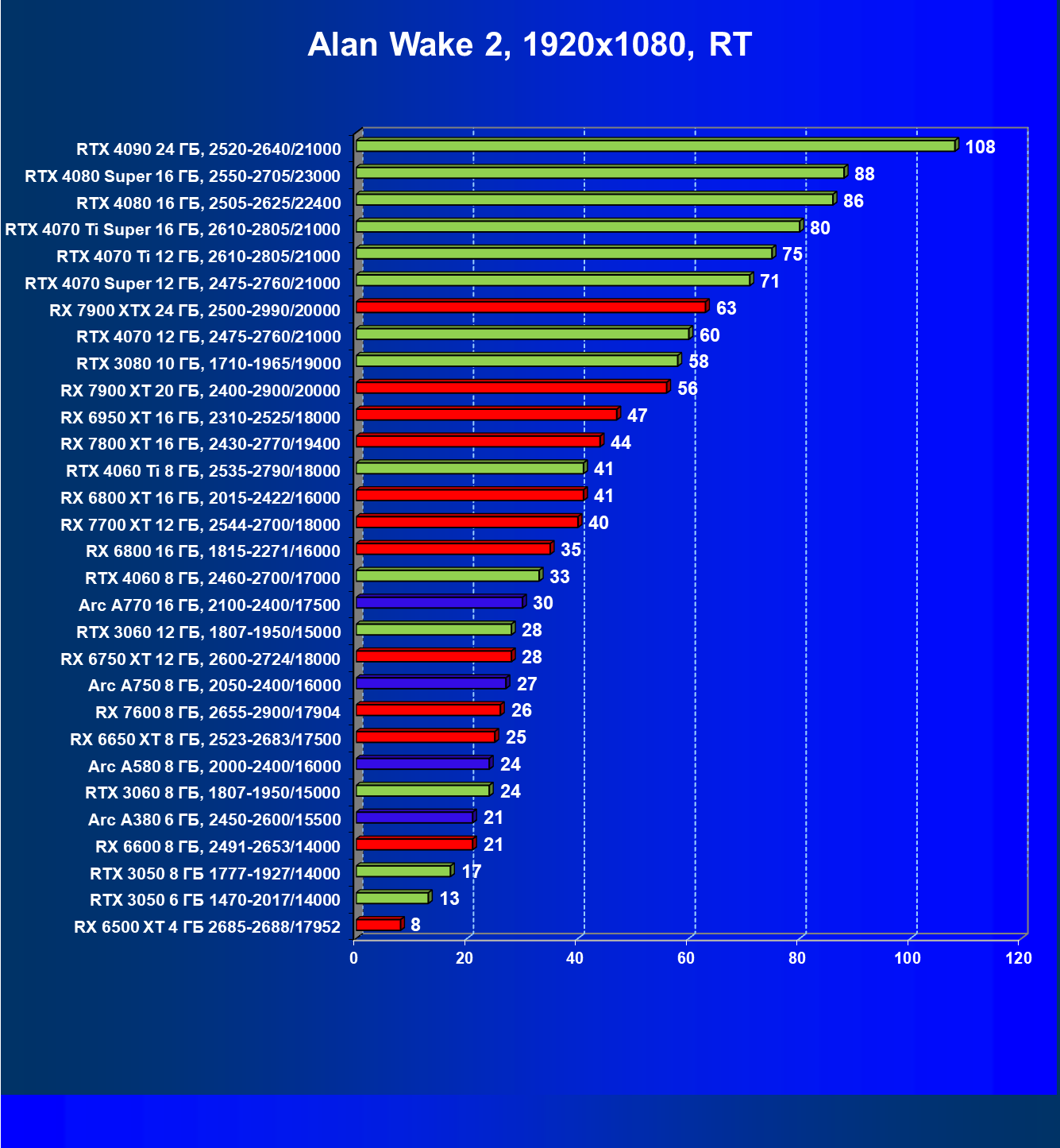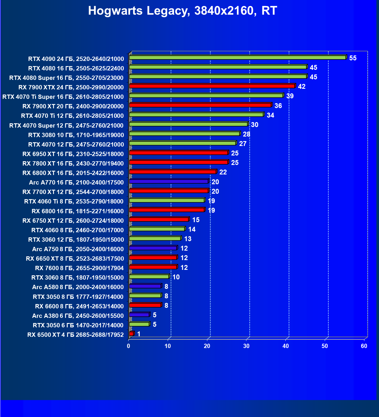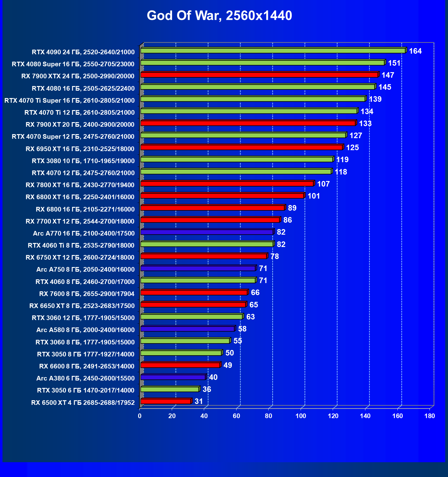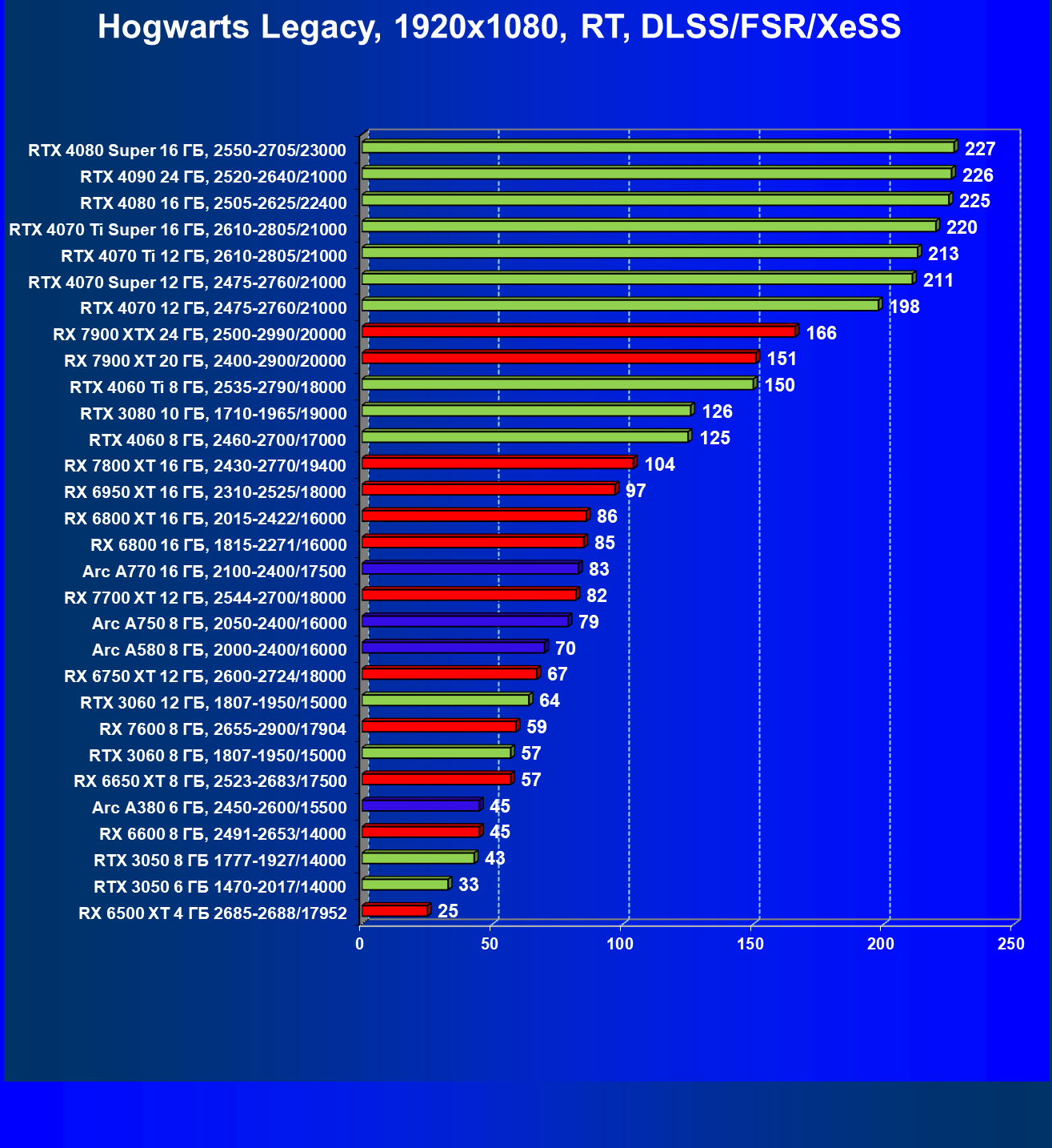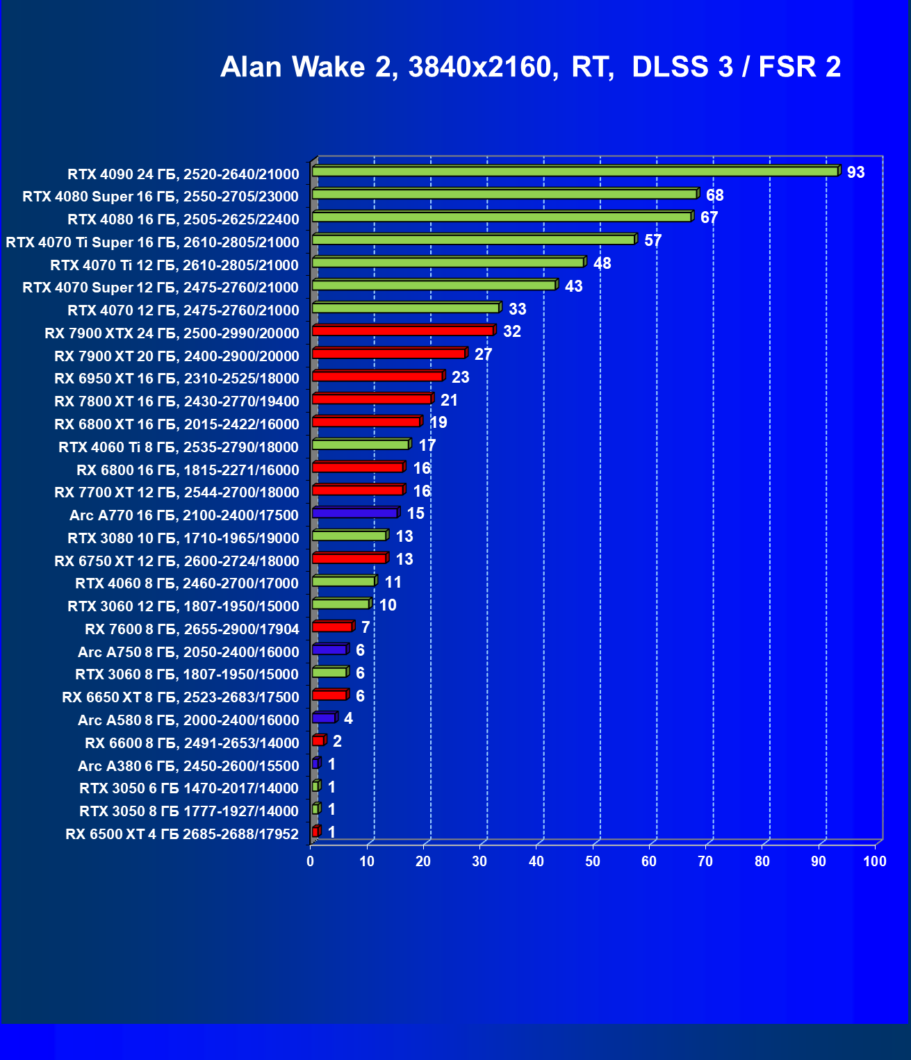 | 28 | Arc A380 6 ГБ, 2450—2600/15500 | 167 | 93 | 18 000 |