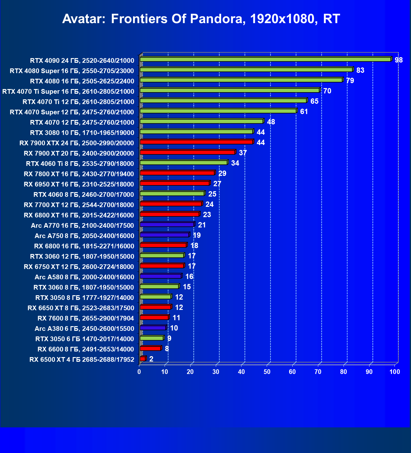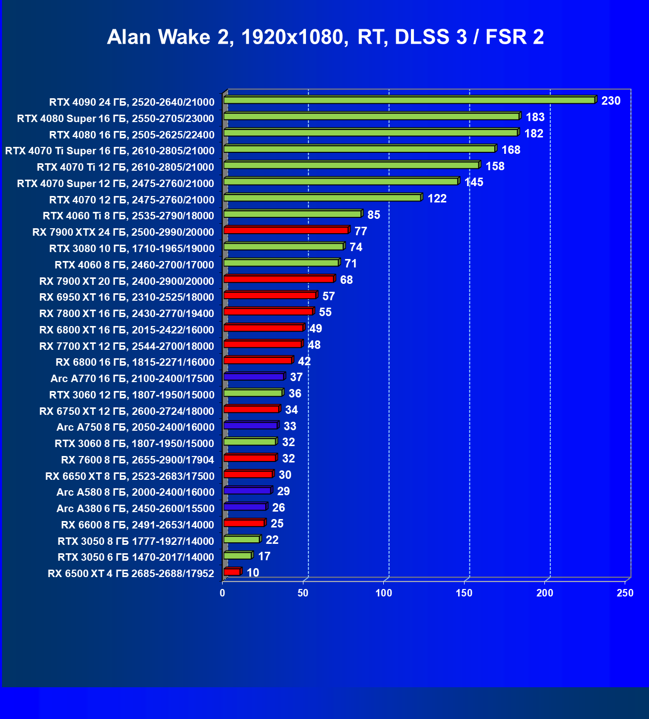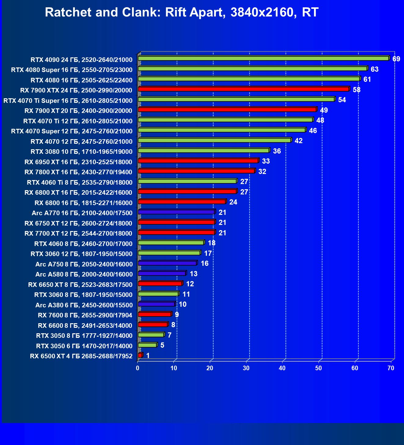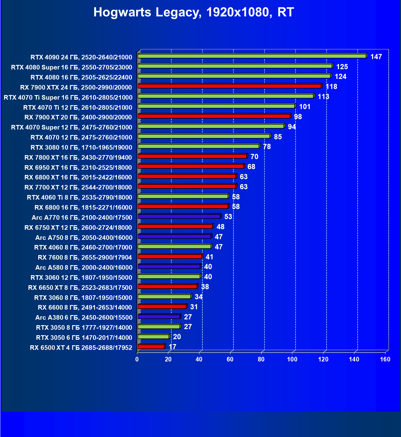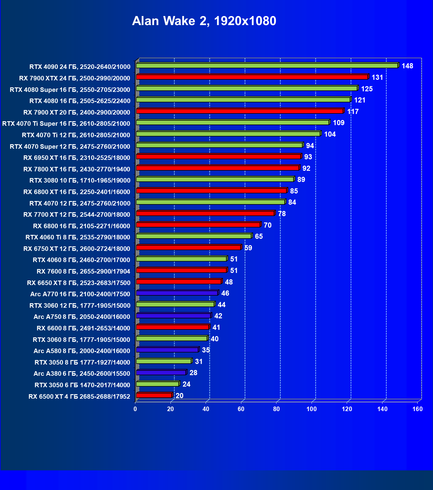 | 28 | Arc A380 6 ГБ, 2450—2600/15500 | 167 | 93 | 18 000 |