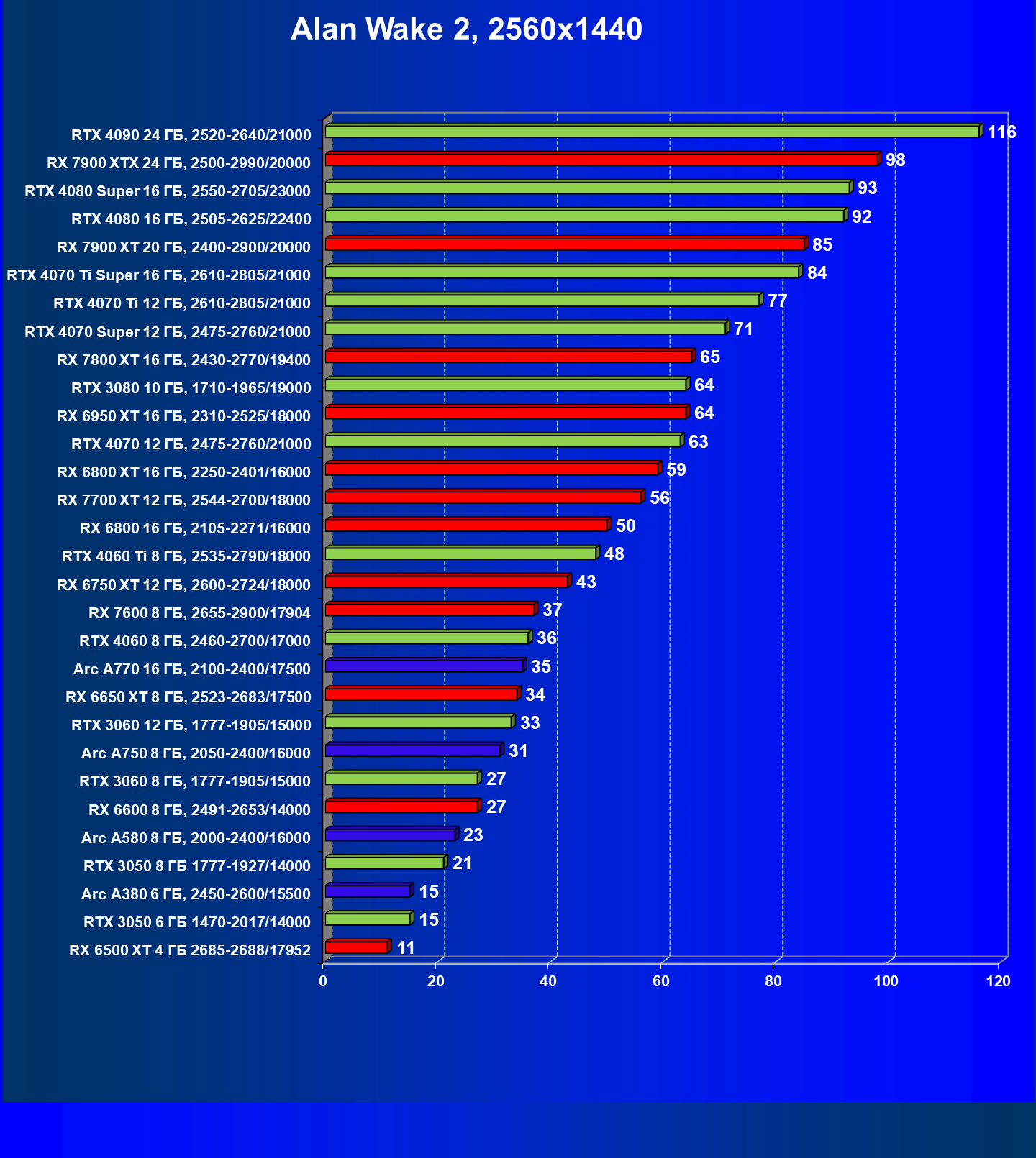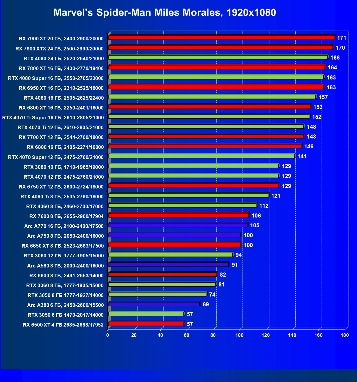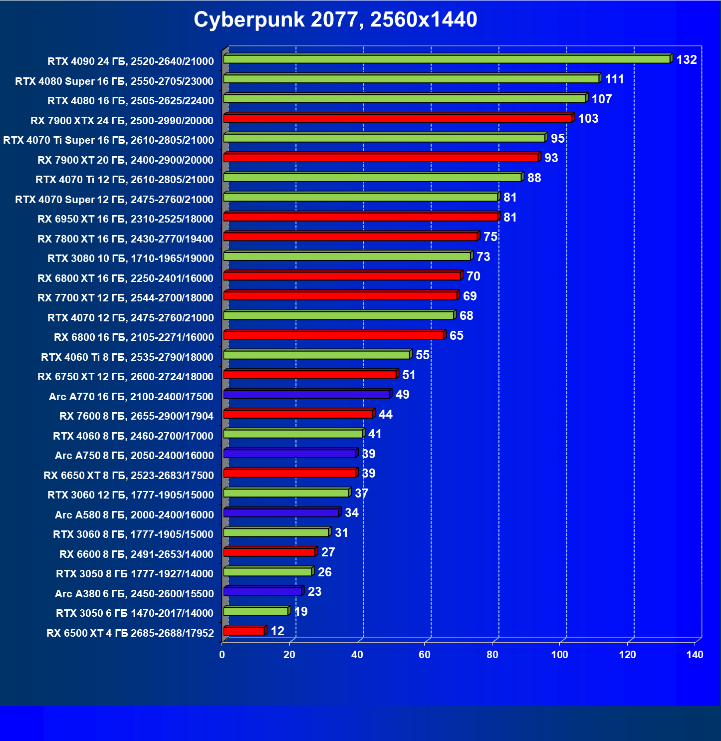| 12 | Arc A380 6 ГБ, 2450—2600/15500 | 93 | 167 | 18 000 |