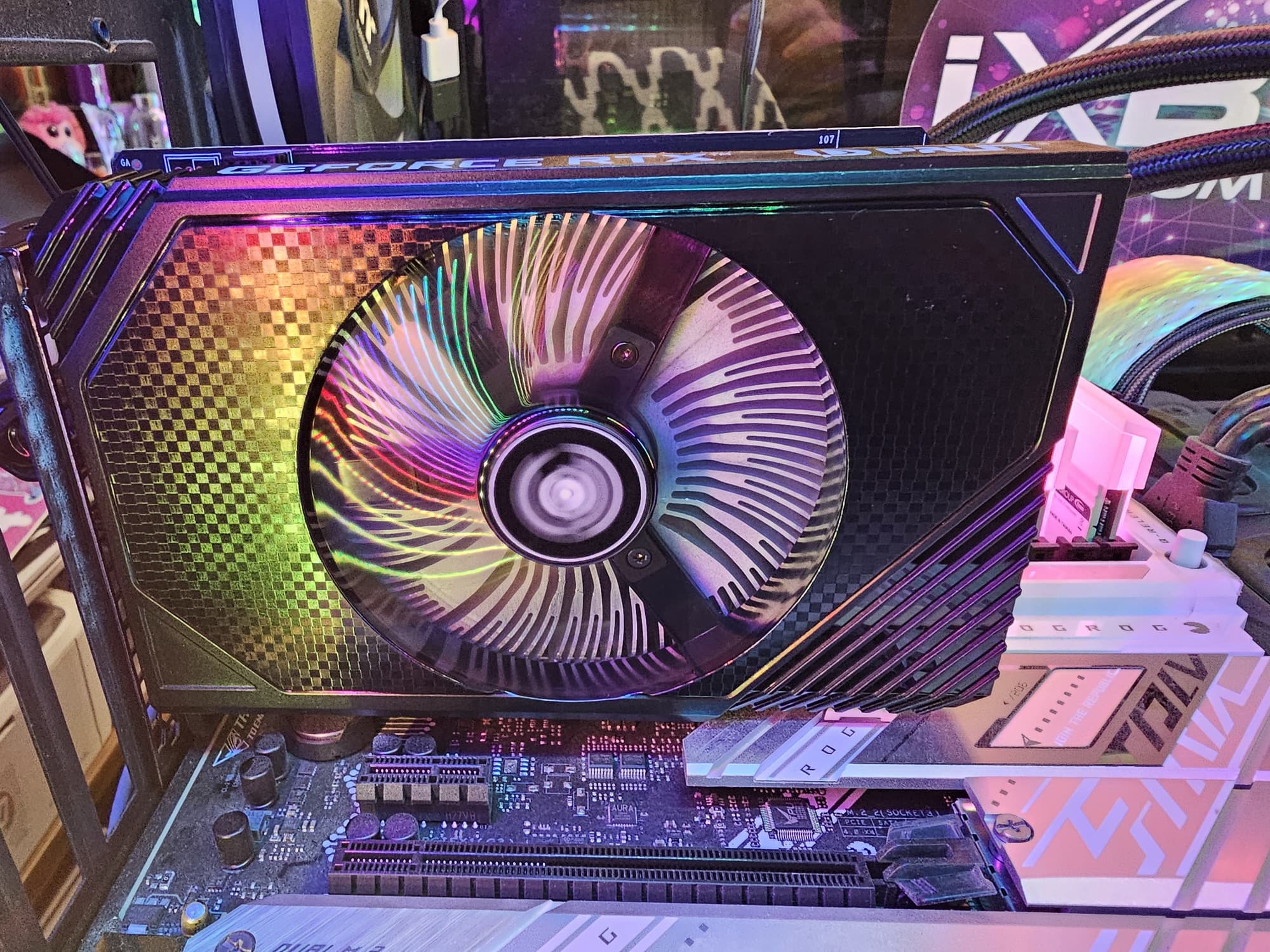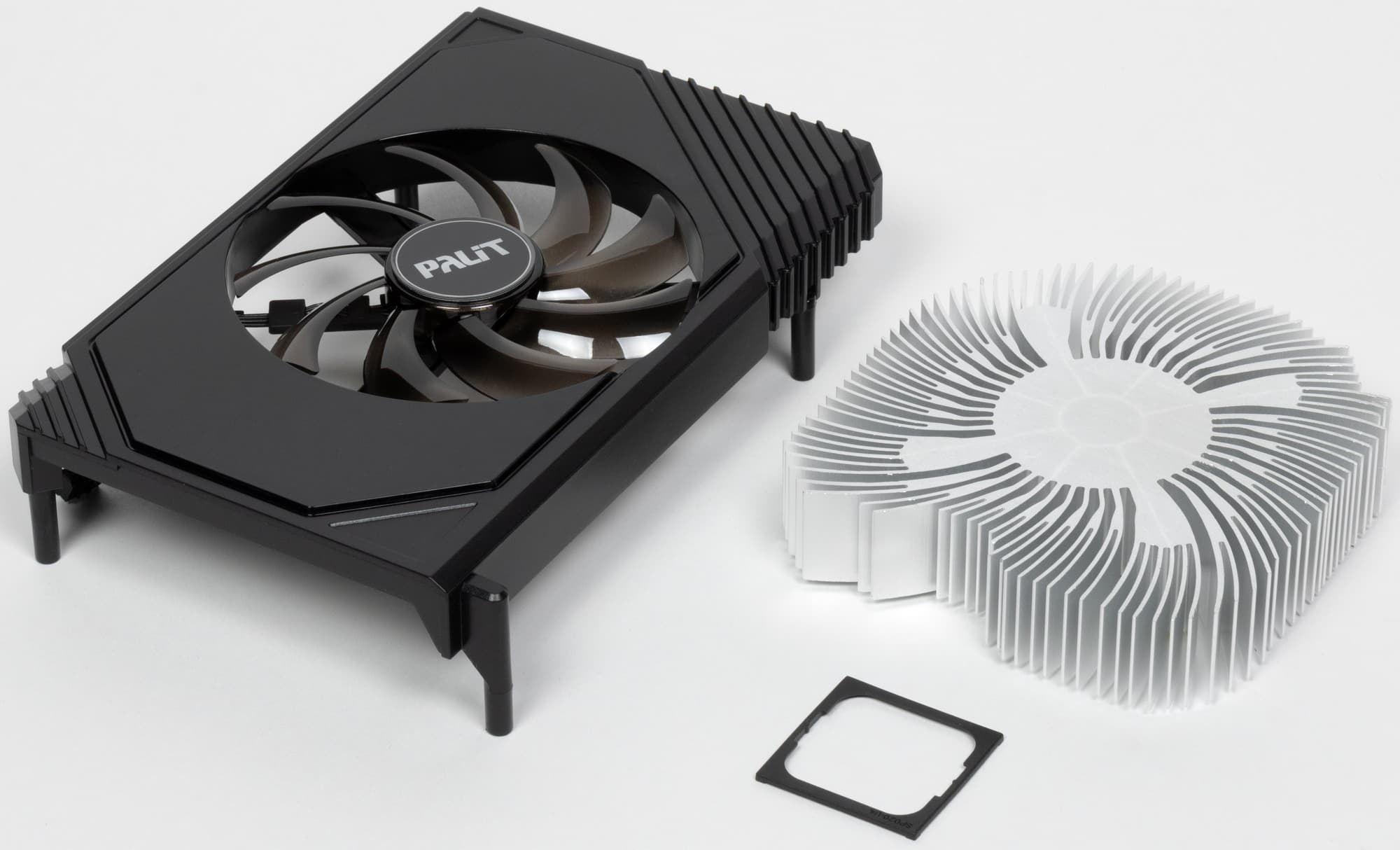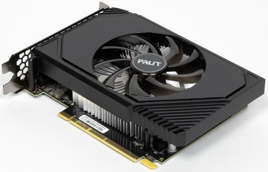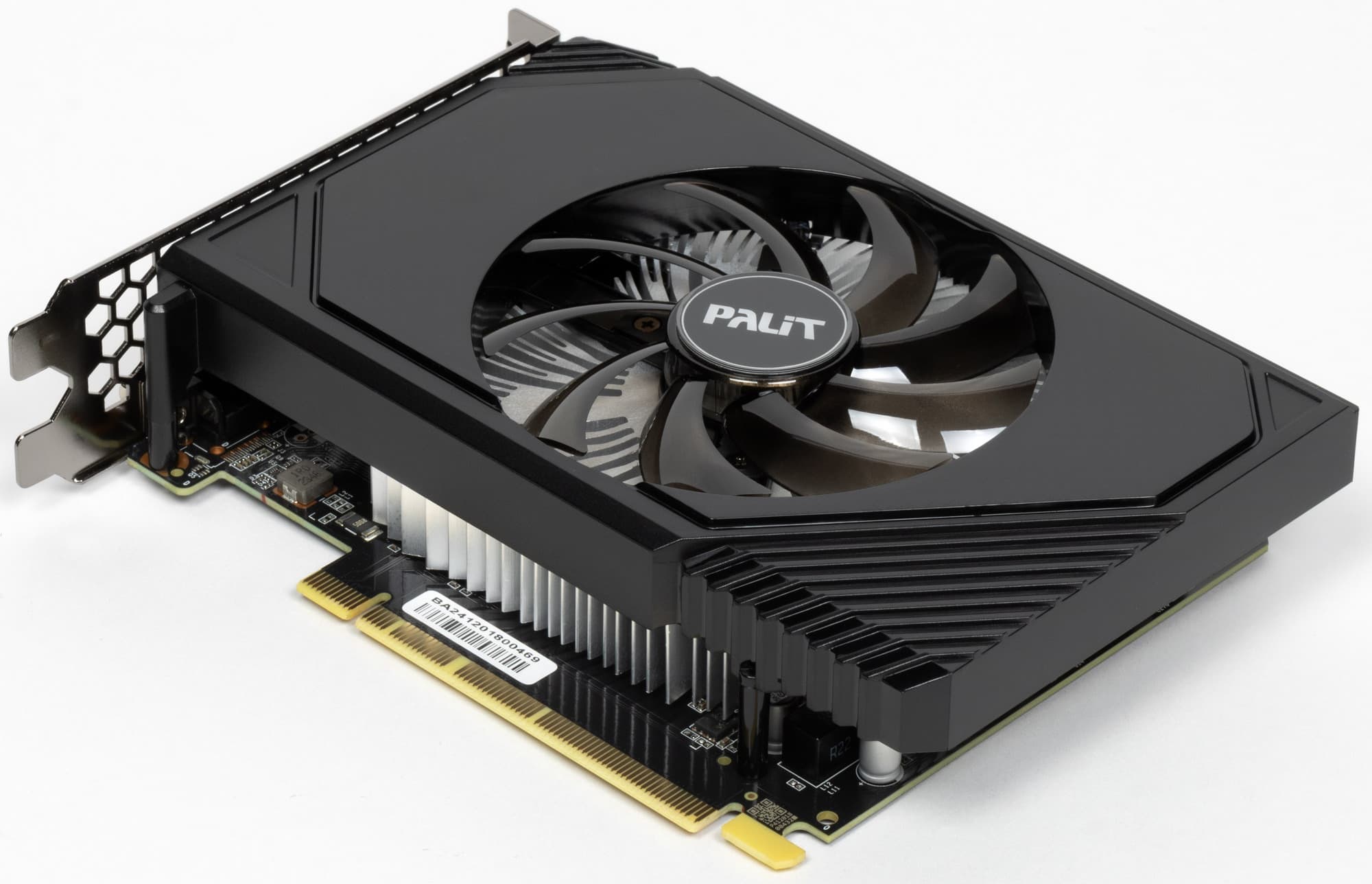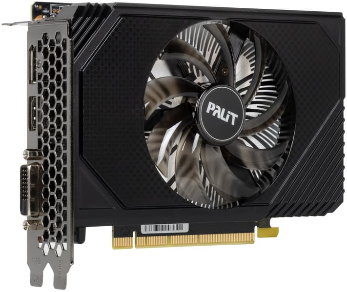 Если говорить о самой карте Palit GeForce RTX 3050 StormX (6 ГБ), то перед нами прекрасный вариант бюджетного современного ускорителя. Судите сами: система охлаждения простая, но тихая и эффективная (GPU потребляет всего около 70 Вт), карта очень компактная (16,5×11×4 см), подходит для решений форм-фактора Mini-ITX и не требует дополнительного питания. Это замечательный выбор для маленького ПК с возможностью неплохо поиграть в современные игры в Full HD, пусть и не с максимальными настройками качества. Набор видеовыходов устроит почти всех: 1 DP 1.4a, 1 HDMI 2.1 и 1 DVI-D.