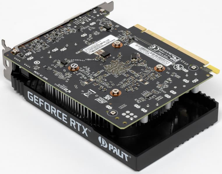 Карта имеет 6 ГБ памяти GDDR6 SDRAM, размещенной в 3 микросхемах по 16 Гбит на лицевой стороне PCB. Микросхемы памяти SK Hynix рассчитаны на условную номинальную частоту работы в 3500 (14000) МГц.