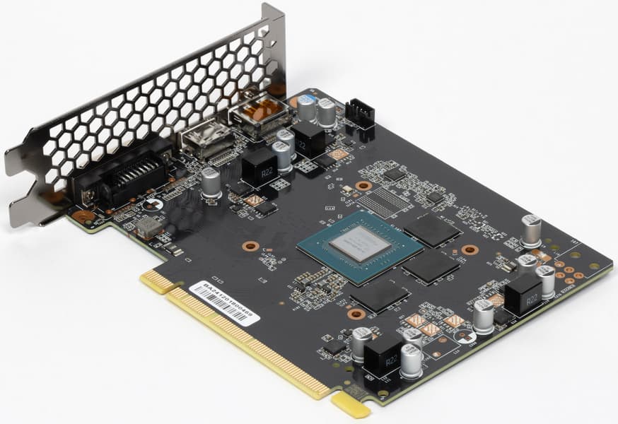 Отметим очень компактные габариты данной карты: 16,5×11,5×4 см. Такой ускоритель отлично подойдет владельцам маленьких корпусов форм-фактора Mini-ITX. Видеокарта занимает два слота в системном блоке.