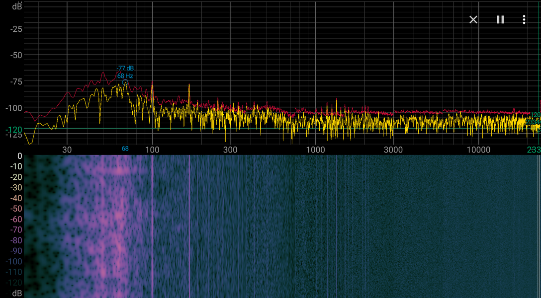 В режиме максимальной нагрузки в 3D температура достигала 65/75 °C (ядро/hot spot). Вентилятор при этом раскручивался до 1295 оборотов в минуту, шум вырастал лишь до 21,7 дБА: это очень тихо. Аудиозапись шума — здесь. Спектрограмма не выявила проблемных моментов в шуме.