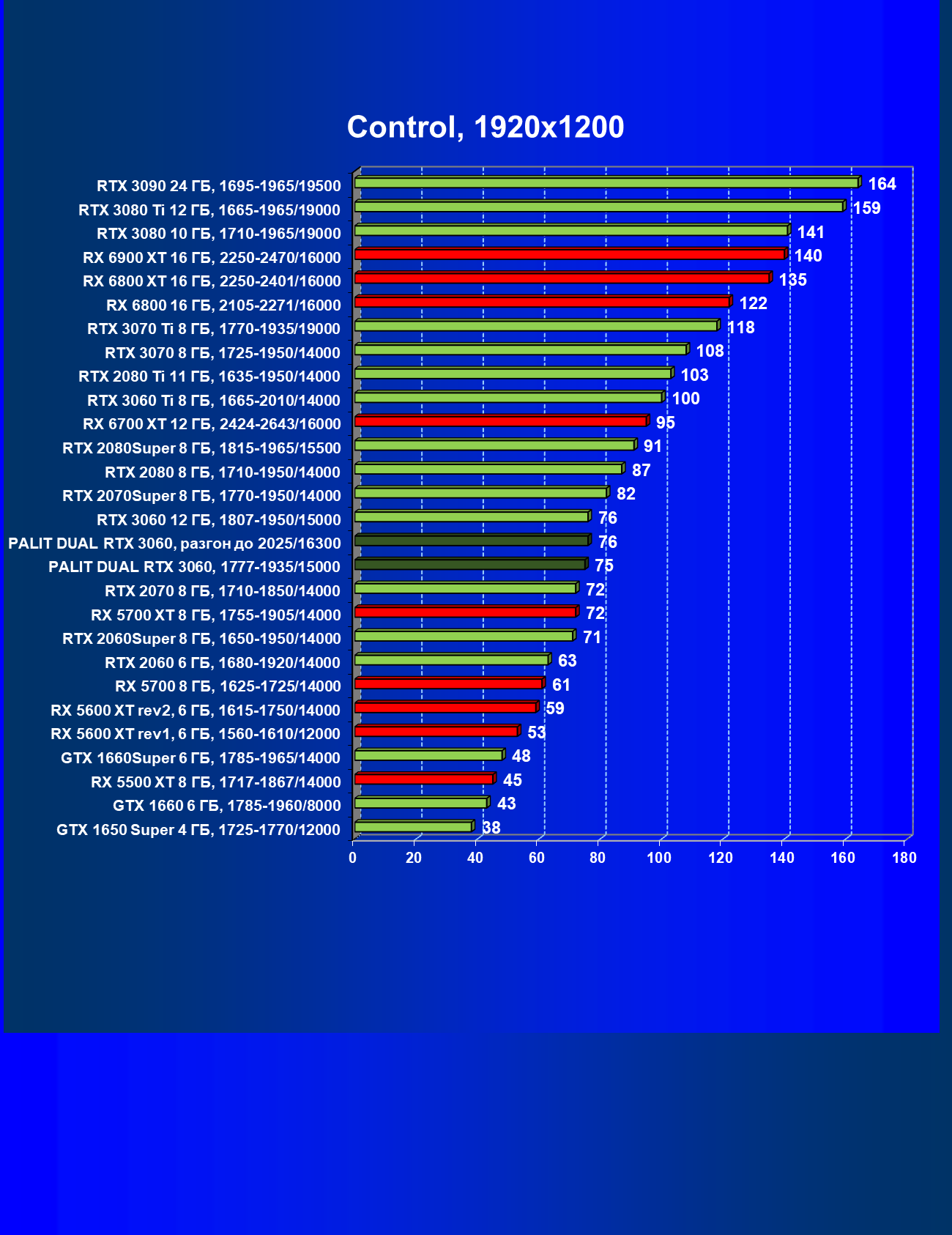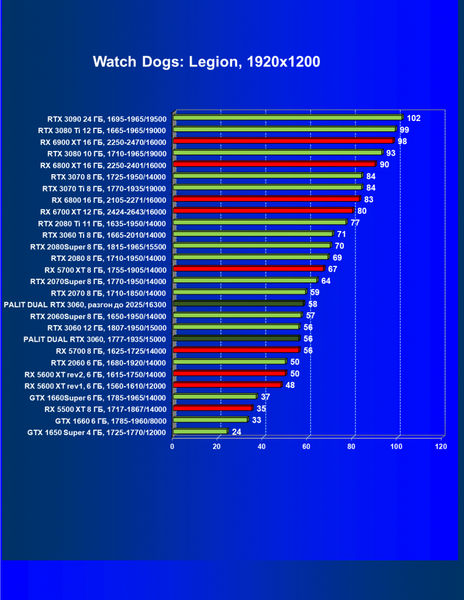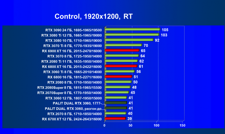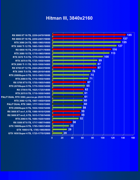 | 19 | RX 6600 XT 8 ГБ, 2359—2664/16000 | 70 | 10 | 68 000 |