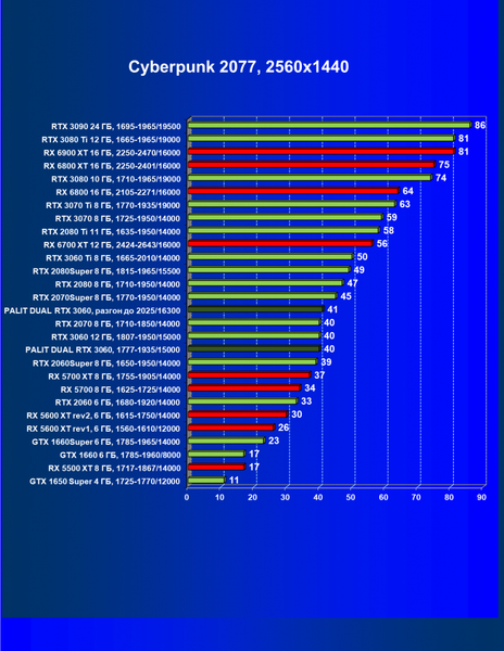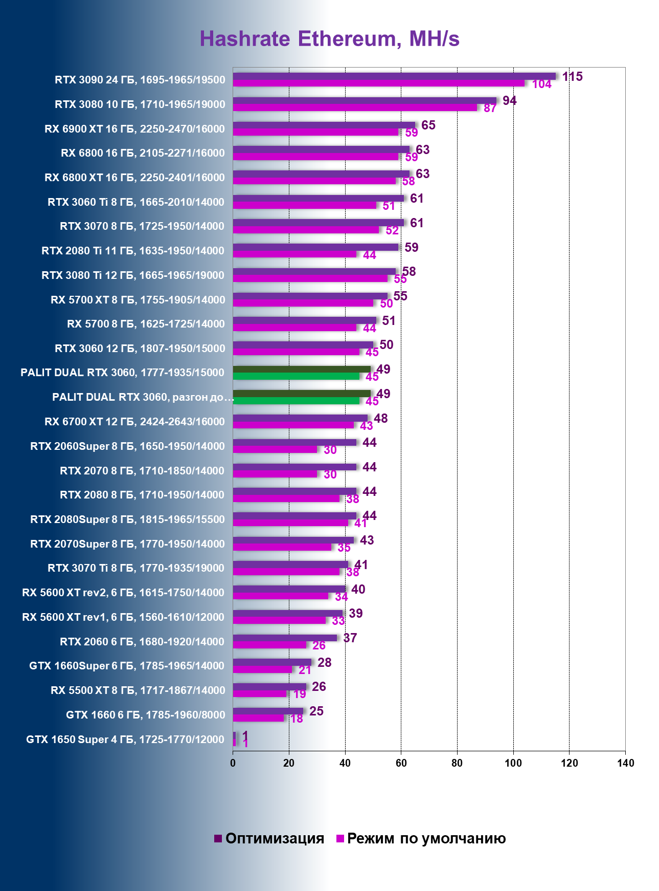 | 03 | Palit Dual RTX 3060, разгон до 2025/16300 | 31 | 210 | 67 000 |