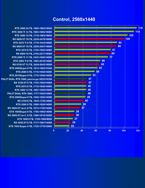 RTX 3060 обходит конкурентов в лице RTX 2070 и RX 5700 XT, но вот с RX 6600 XT ему тягаться тяжело, карта Palit логично показала полное равенство с референс-продуктом, а ручной разгон ей практически ничего не дал, ибо несмотря на разовые всплески частот работы GPU выше 2 ГГц, все же лимит потребления не позволял частотам в целом как-то подниматься выше 1935 — 1940 МГц. Так что, RTX 2070 Super — в лидерах в группе (на цены смотреть нет смысла, ибо на 2ххх поколение они исключительно спекулятивные, да и карты можно найти в основном на вторичном рынке), а также Radeon RX 6600 XT смотрится более привлекательно.