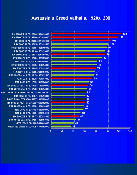 | 19 | RX 5700 XT 8 ГБ, 1755—1905/14000 | 25 | 200 | 79 000 |