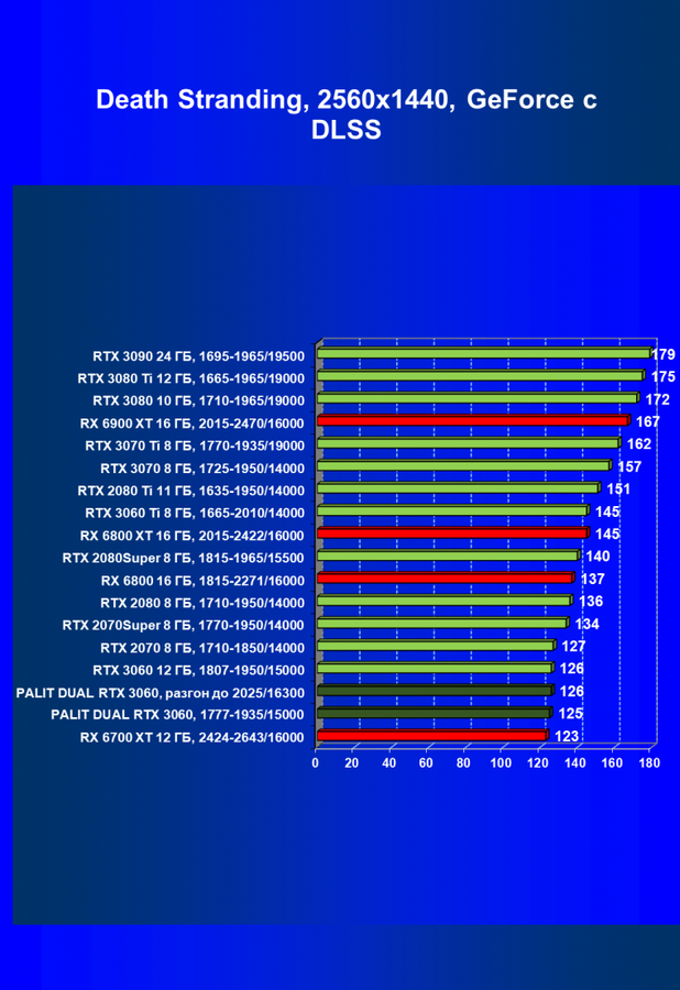 В каких-то играх возможностей GeForce RTX 3060 хватит и для разрешения 2.5К. С учетом того, что ранее для подобных разрешений хватало объема памяти 8 ГБ, нынешние 12 ГБ у GeForce RTX 3060 — ход вынужденный: на картах с шиной в 192 бит можно установить либо 6, либо 12 гигабайт памяти, а 6 гигабайт может не хватить для реализации DLSS 2.0. Вот почему этот середняк получил больше памяти, чем даже топовый GeForce RTX 3080.
