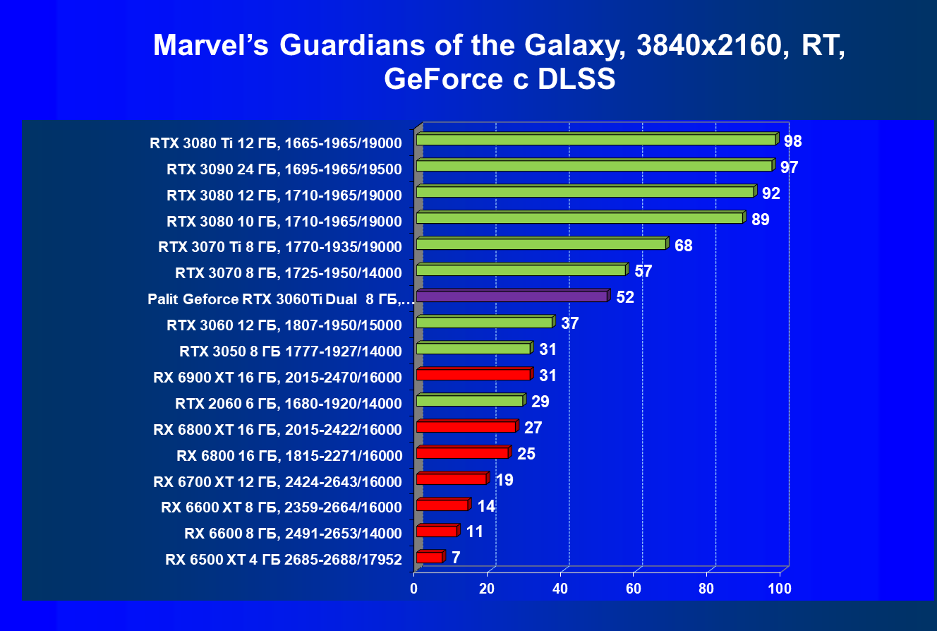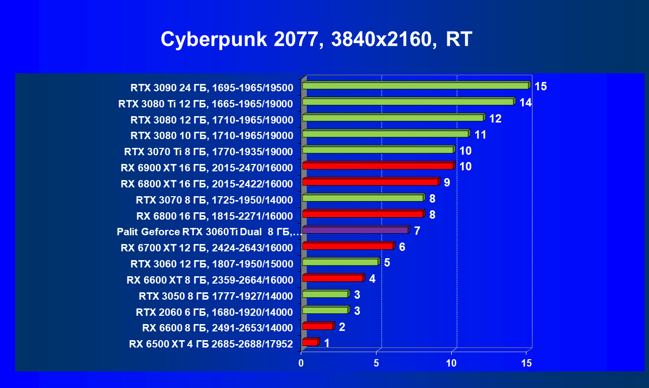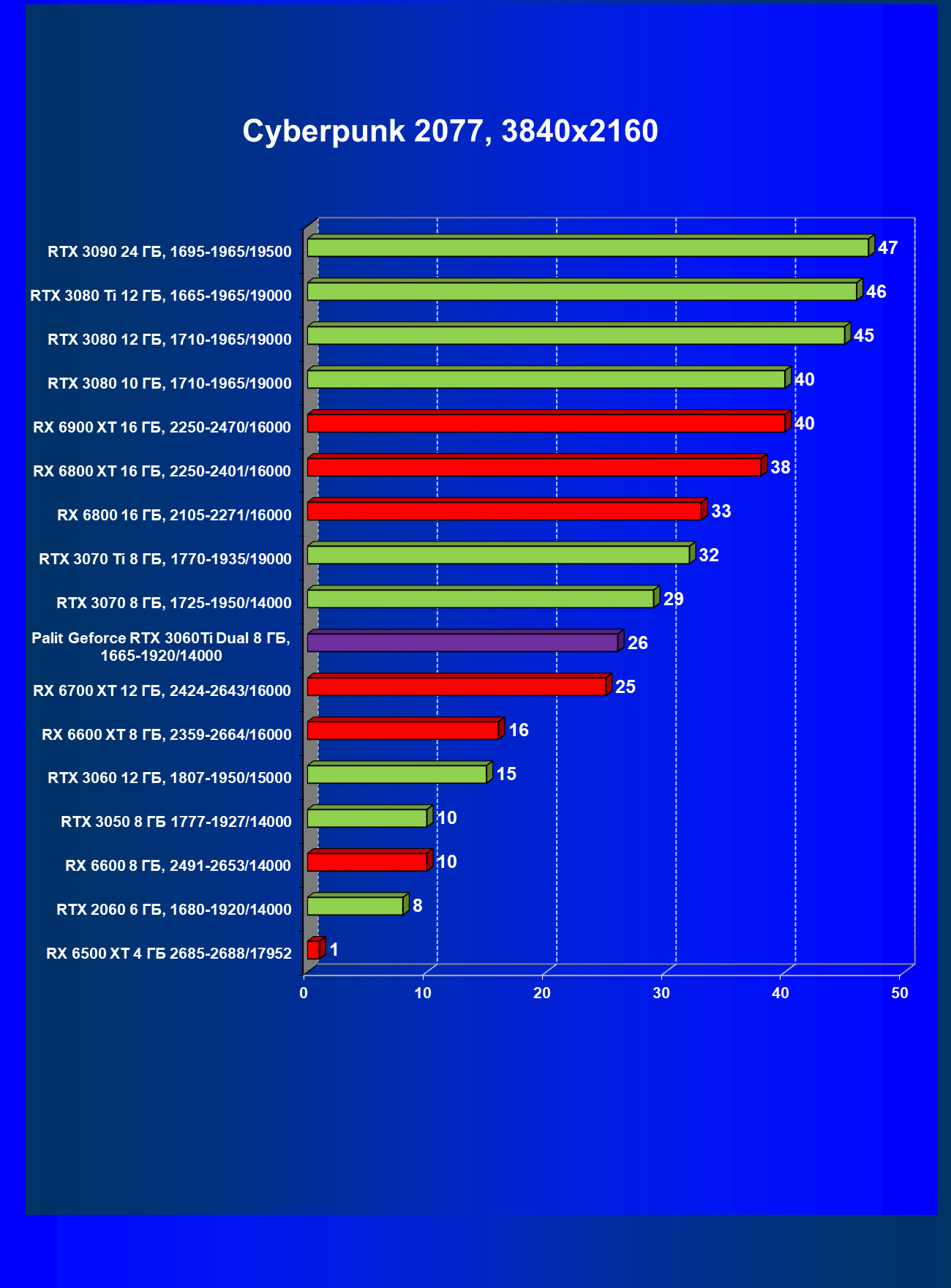 | 08 | Palit RTX 3060 Ti Dual, 1665—1920/14000 | 28 | 260 | 92 000 |
