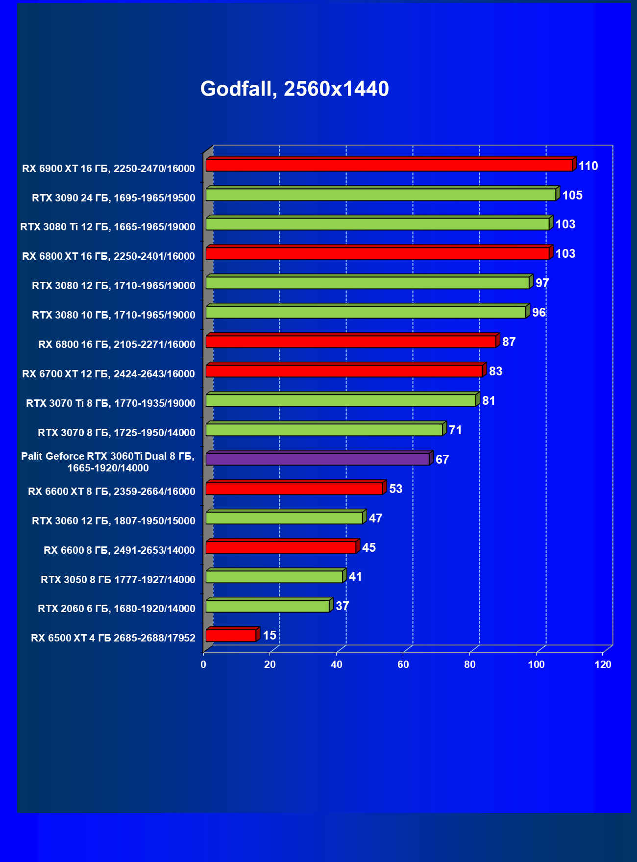 Карта Palit пока еще слишком дорога (возможно, цены уже поменялись к тому моменту, когда вы читаете обзор) и не выглядит заманчиво на фоне даже более дорогого GeForce RTX 3070, да и Radeon RX 6700 XT сморится лучше, пока дело не доходит до трассировки лучей.