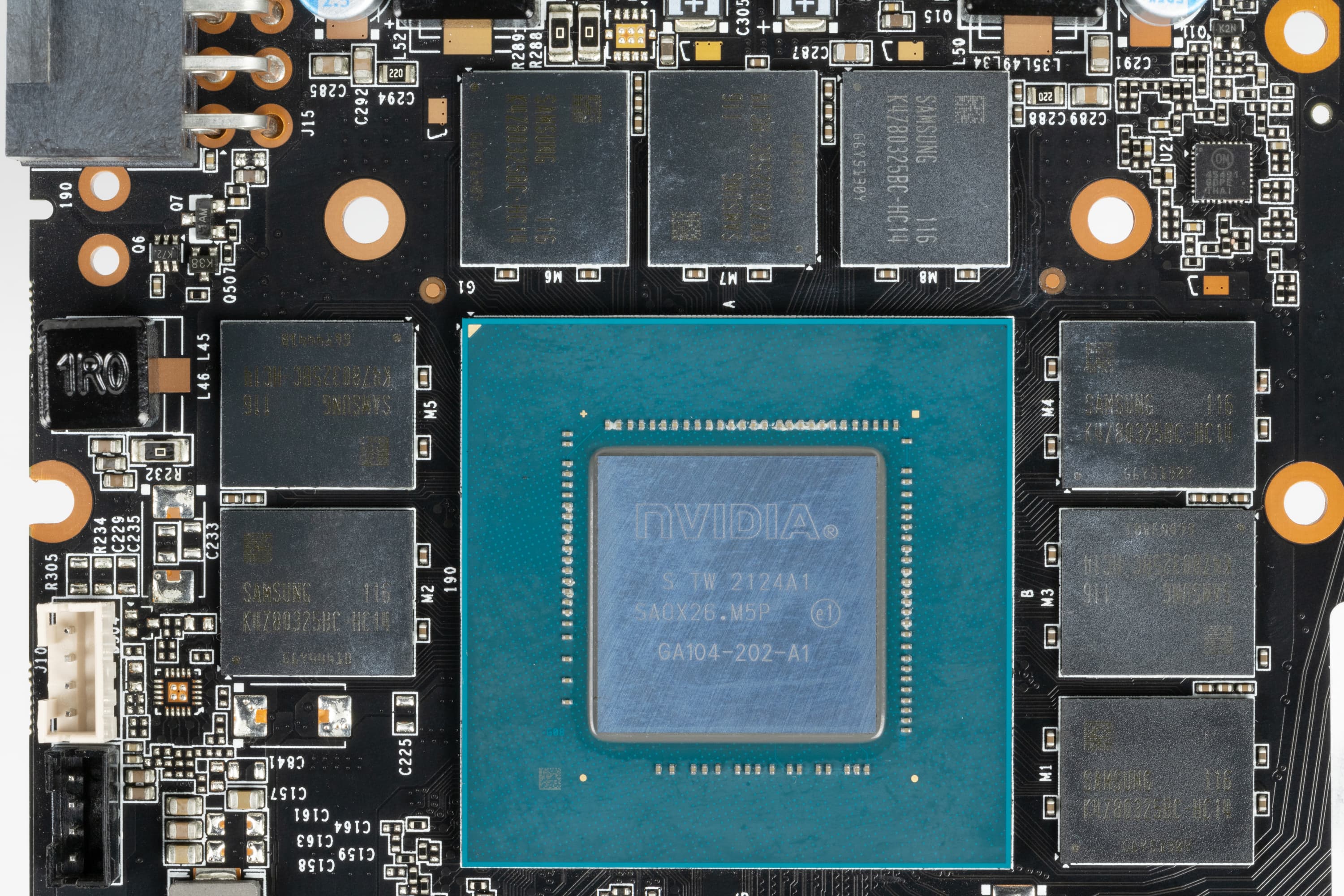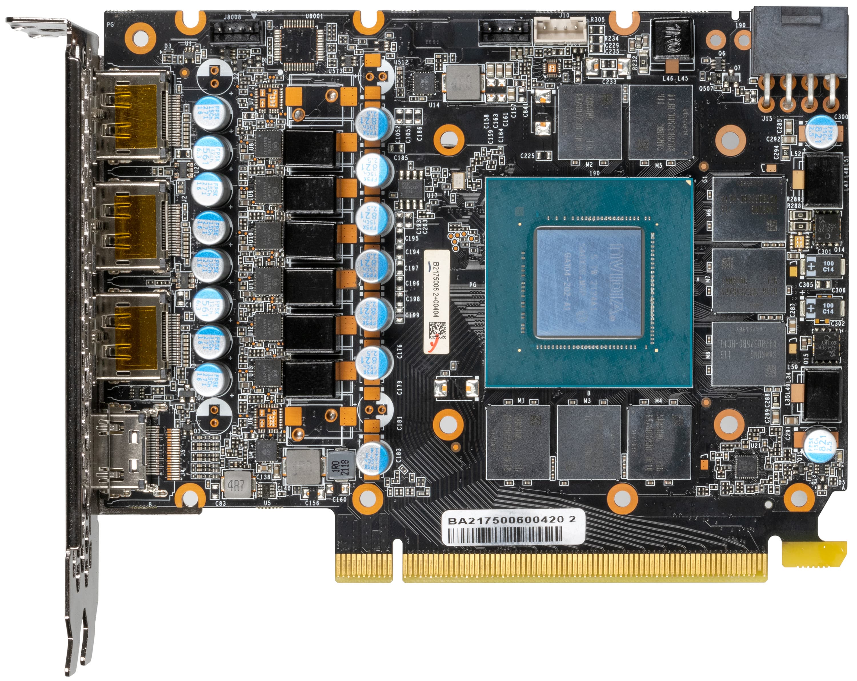 Плата схожа с Founders Edition (референс) в плане размещения GPU и микросхем памяти, а также расположения фаз питания в целом. Как и у всех GeForce RTX 3070 Ti/3070/3060 Ti/3060, используется графический процессор под кодовым названием GA104.