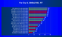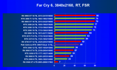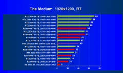 Рейтинг составлен по 9 тестам с применением технологии трассировки лучей (с Nvidia DLSS и с AMD FSR в играх God of War, The Medium и Far Cry 6). Этот рейтинг нормирован по самому слабому ускорителю в данной группе — Radeon RX 6500 XT (то есть сочетание скорости и функций Radeon RX 6500 XT приняты за 100%).