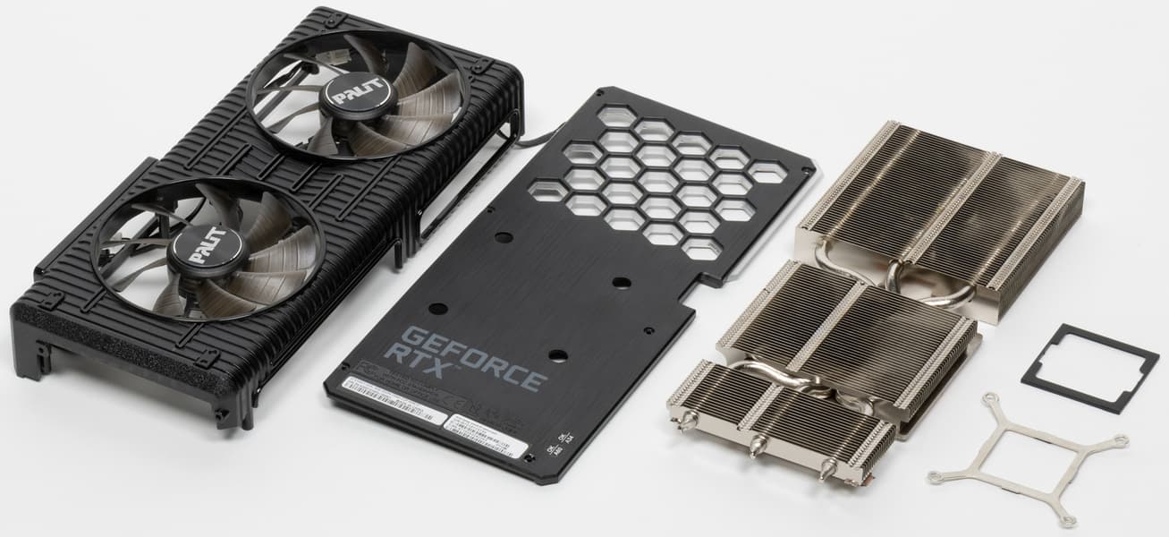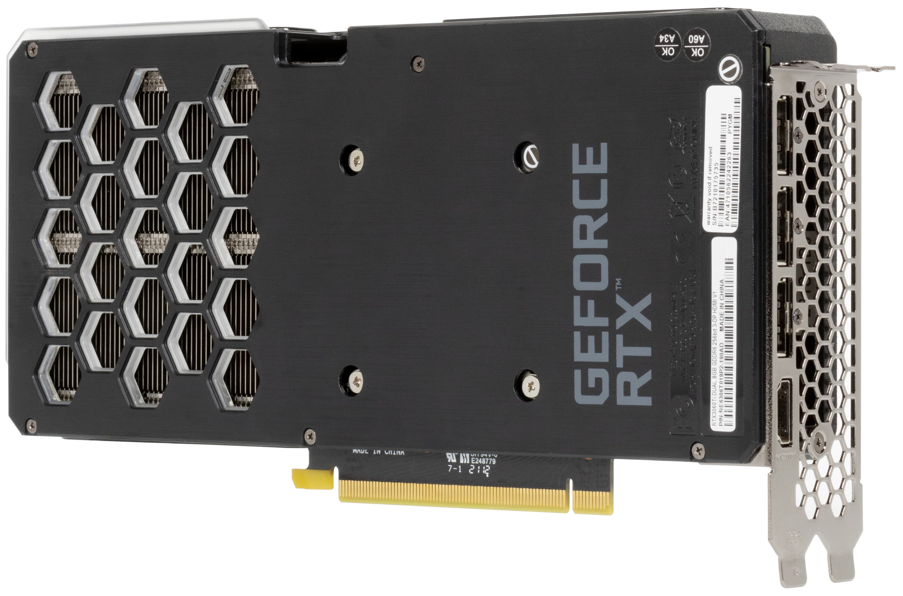 По внешнему виду обозреваемая модель немного напоминает GeForce RTX 3060 Ti Founders Edition — по вентиляторам и габаритам. Но у модели Palit имеется подсветка.