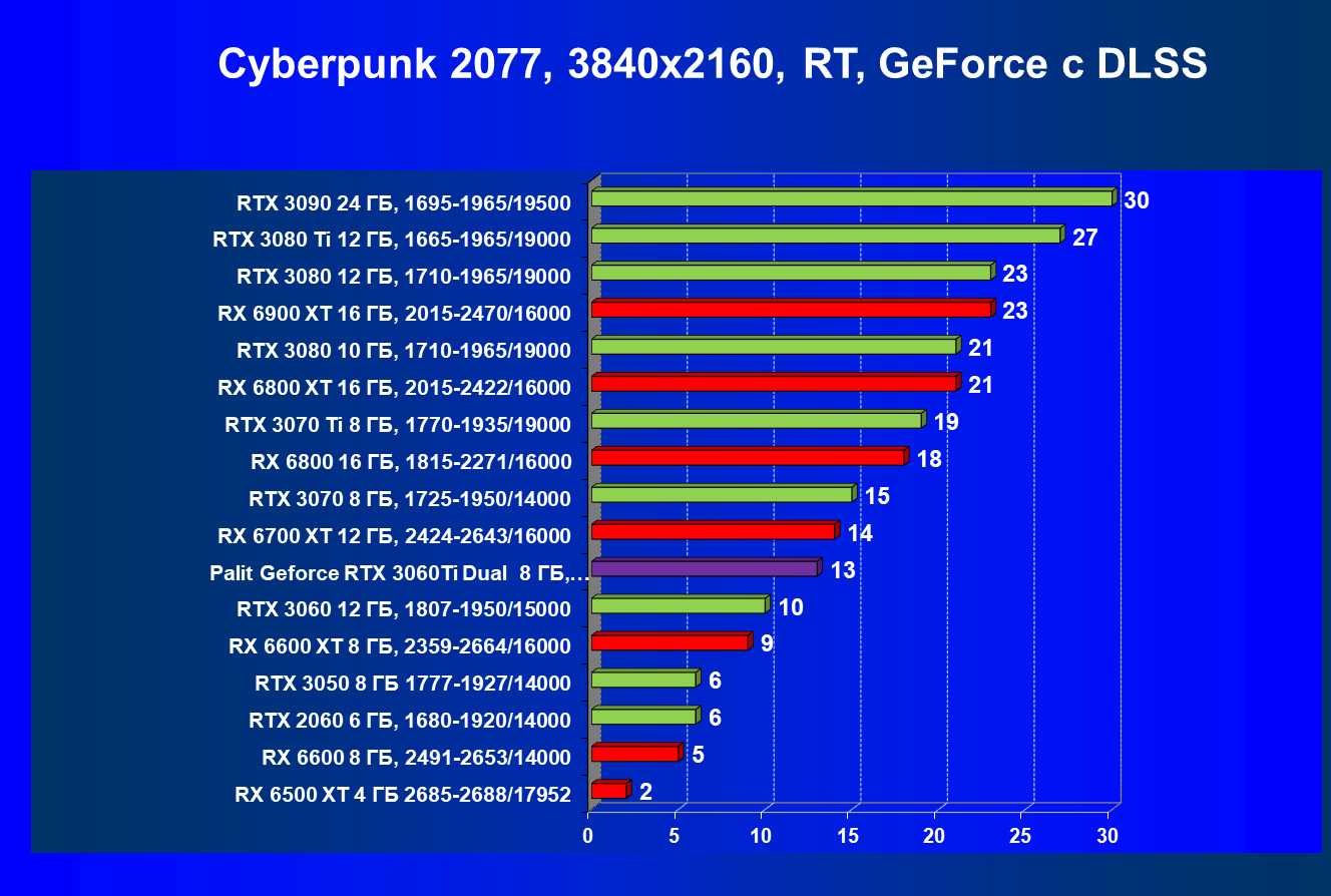 | 11 | Palit RTX 3060 Ti Dual, 1665—1920/14000 | 260 | 28 | 92 000 |