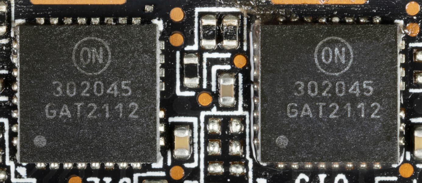 В преобразователе питания используются транзисторные сборки On Semiconductor — 302045, каждая из которых рассчитана максимум на 45 А.