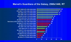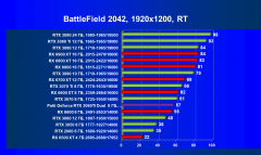 Результаты тестов со включенной аппаратной трассировкой лучей и/или DLSS/FSR в разрешениях 1920×1200, 2560×1440 и 3840×2160