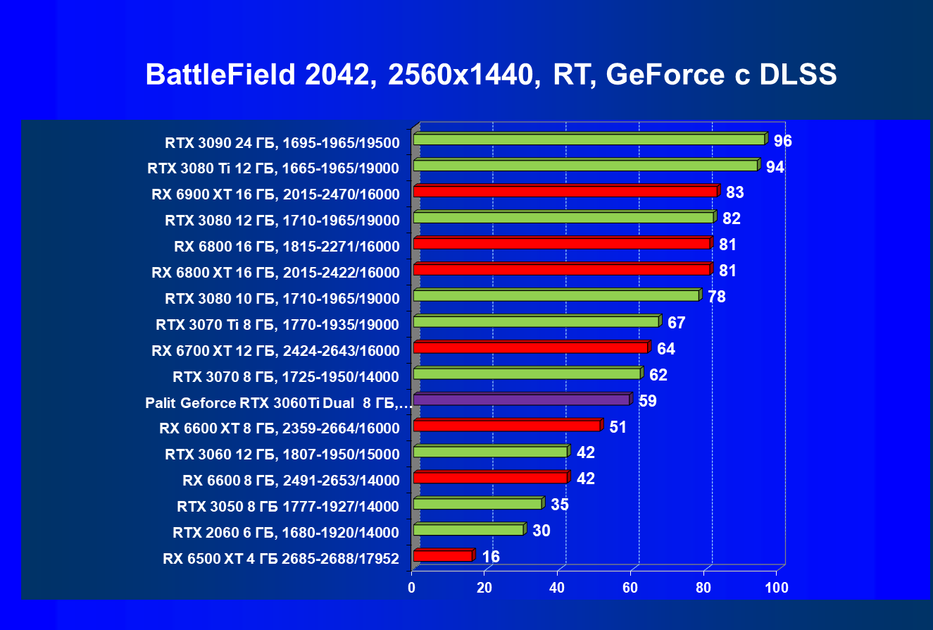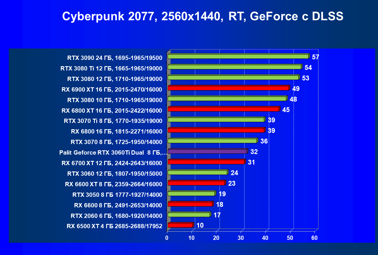 GeForce RTX 3060 Ti показывает себя чуть менее производительным решением, чем конкурент в лице Radeon RX 6700 XT, а ценники у них примерно одинаковые. Но при этом GeForce RTX 3060 Ti позволит поиграть во многие игры на максимальных настройках графики даже в разрешении 2.5К, если технология DLSS поддерживается игрой.