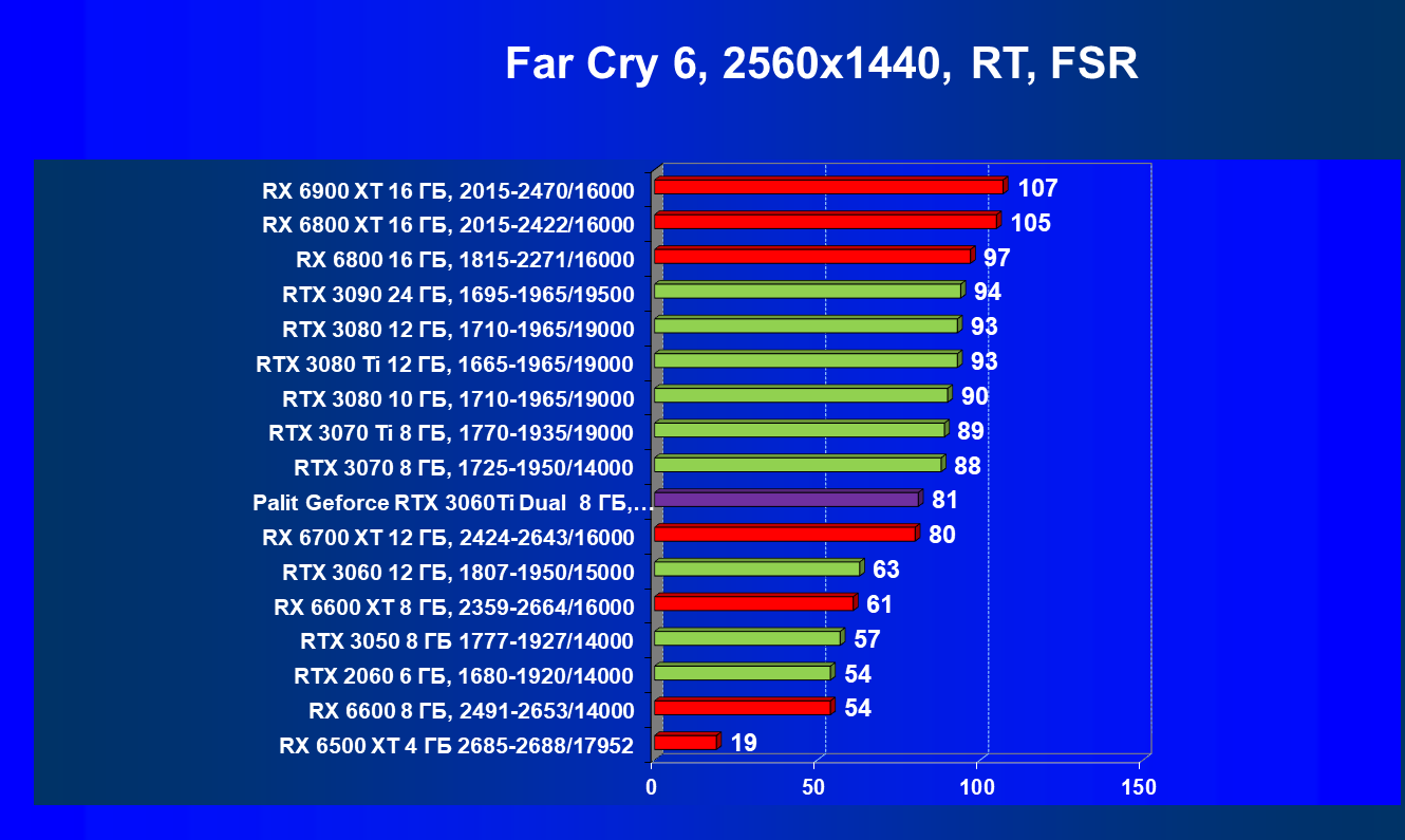 | 12 | RX 6600 XT 8 ГБ, 2359—2664/16000 | 210 | 32 | 66 000 |