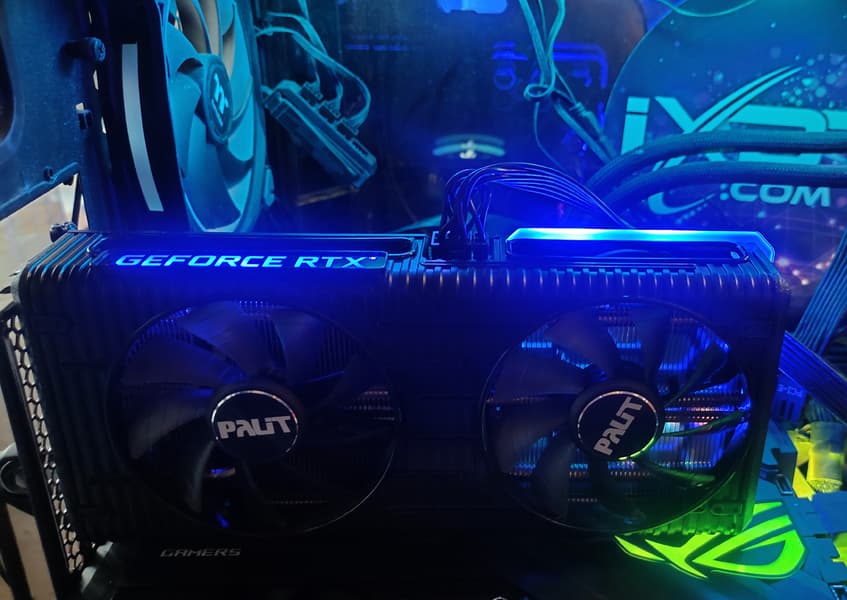 Что касается конкретной карты Palit, то к вышеперечисленным достоинствам GeForce RTX 3060 Ti можно еще добавить относительно компактные размеры, позволяющие использовать карту в небольших корпусах, и негромкую СО. Кому-то покажется преимуществом наличие настраиваемой подсветки.