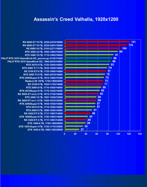 | 10 | RX 6800 16 ГБ, 1815—2271/16000 | 140 | 13 | 109 000 |