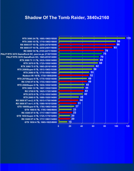 | 05 | Palit RTX 3070 GameRock OC, разгон до 2130/15500 | 690 | 54 | 128 000 |