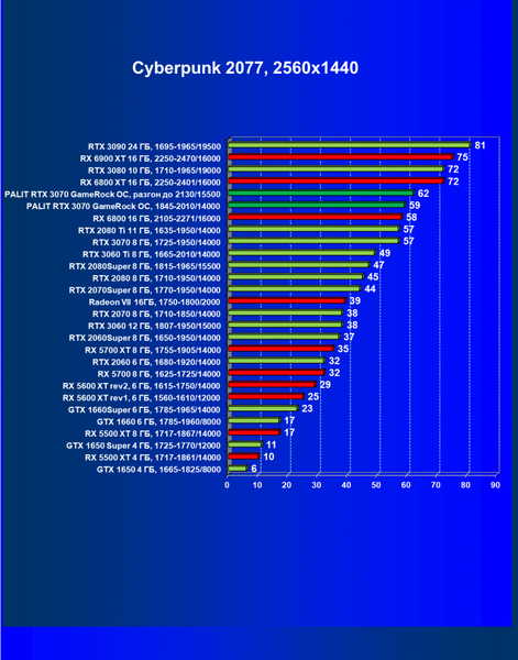 | 04 | Palit RTX 3070 GameRock OC, 1845—2010/14000 | 15 | 189 | 128 000 |