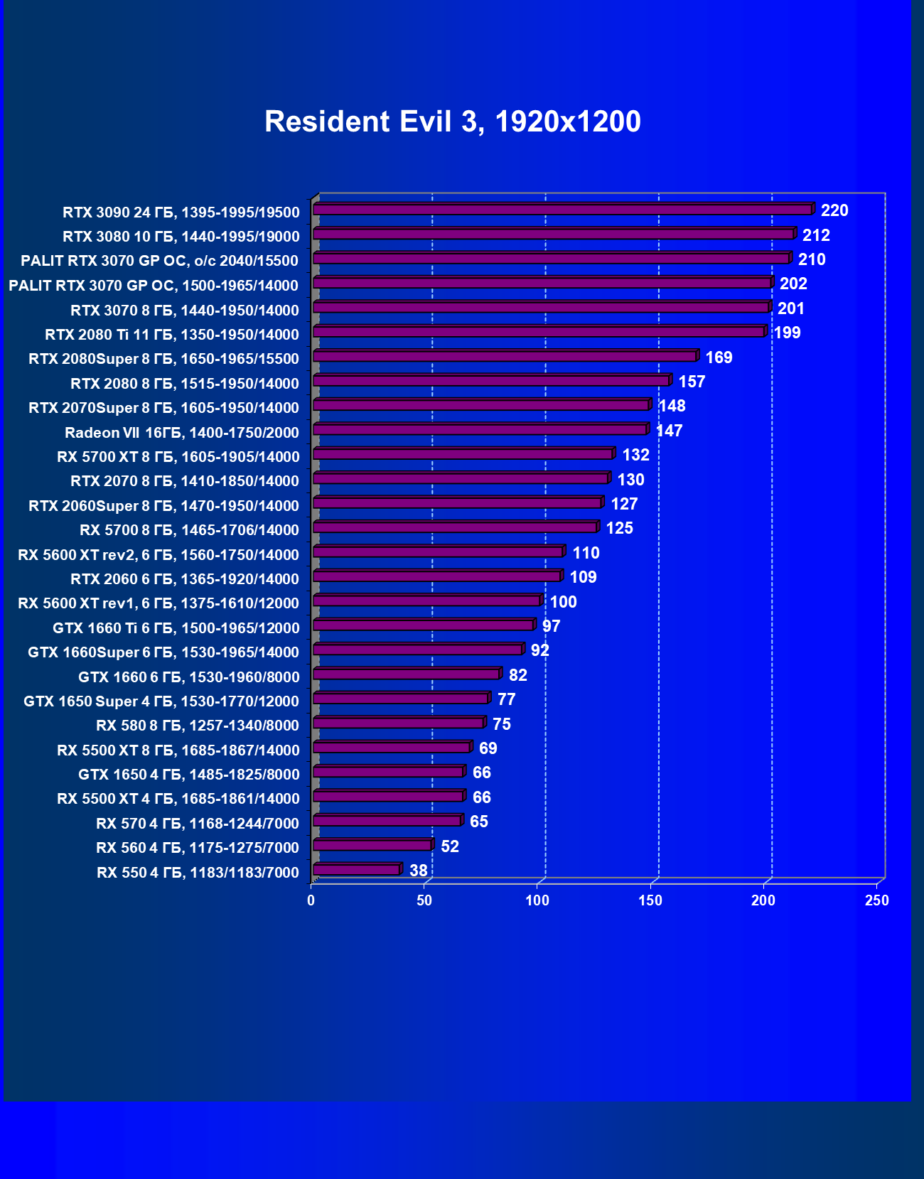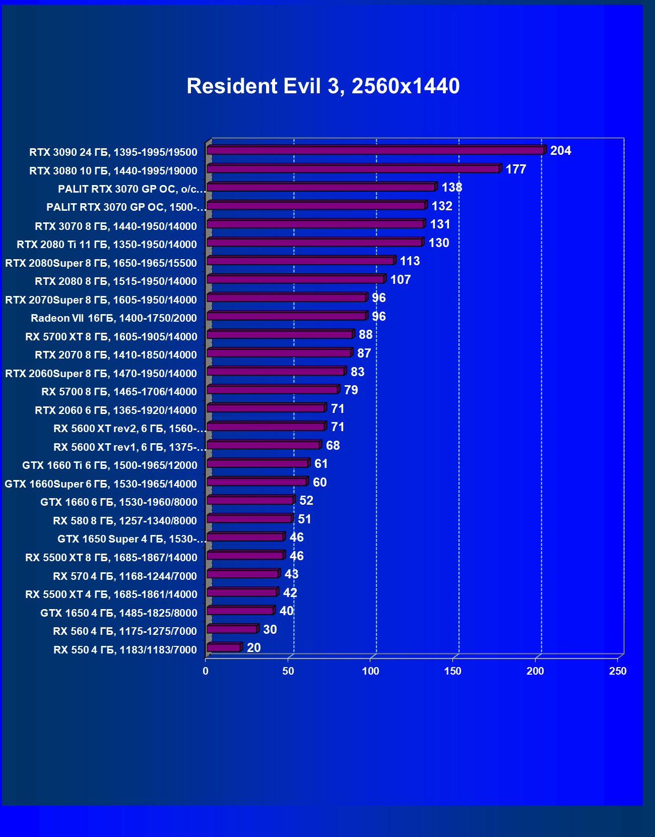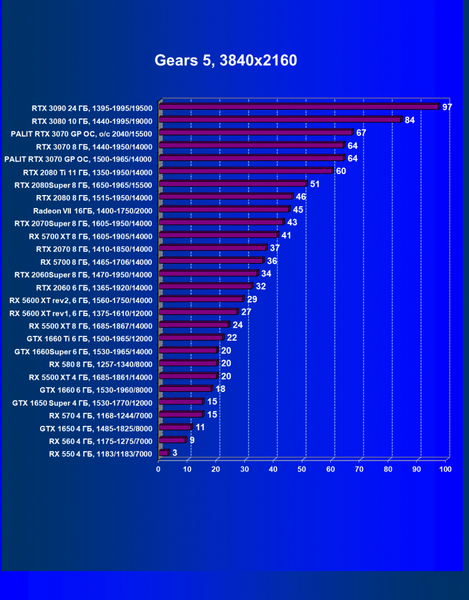 Рейтинг ускорителей iXBT.com демонстрирует нам функциональность видеокарт друг относительно друга и нормирован по самому слабому ускорителю — Radeon RX 550 (то есть сочетание скорости и функций Radeon RX 550 приняты за 100%). Рейтинги ведутся по 28 ежемесячно исследуемым нами акселераторам в рамках проекта Лучшая видеокарта месяца. В данном случае из общего списка выбрана группа карт для анализа, в которую входят GeForce RTX 3070 и его конкуренты.