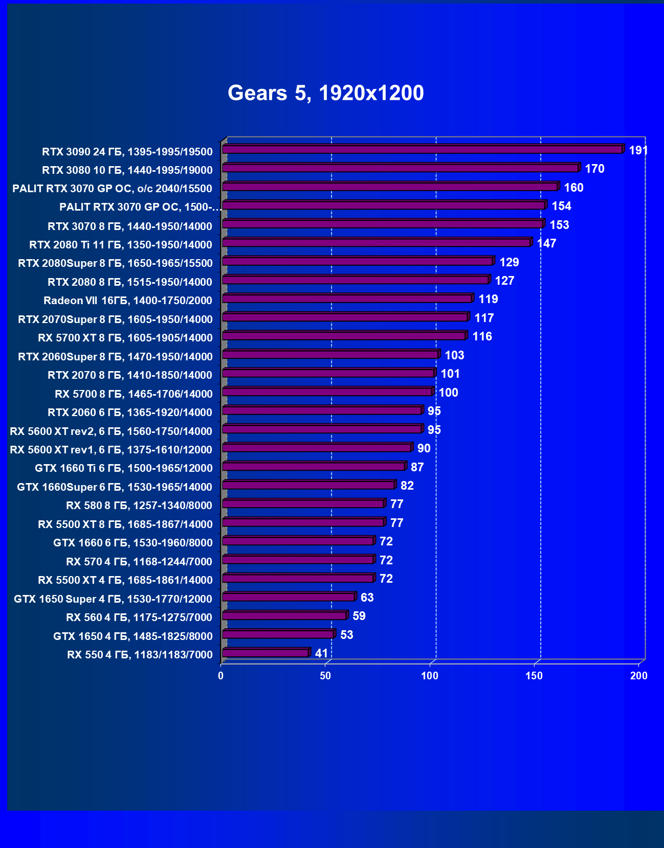 | 04 | RTX 3070 8 ГБ, 1440—1950/14000 | 613 | 3065 | 50 000 |