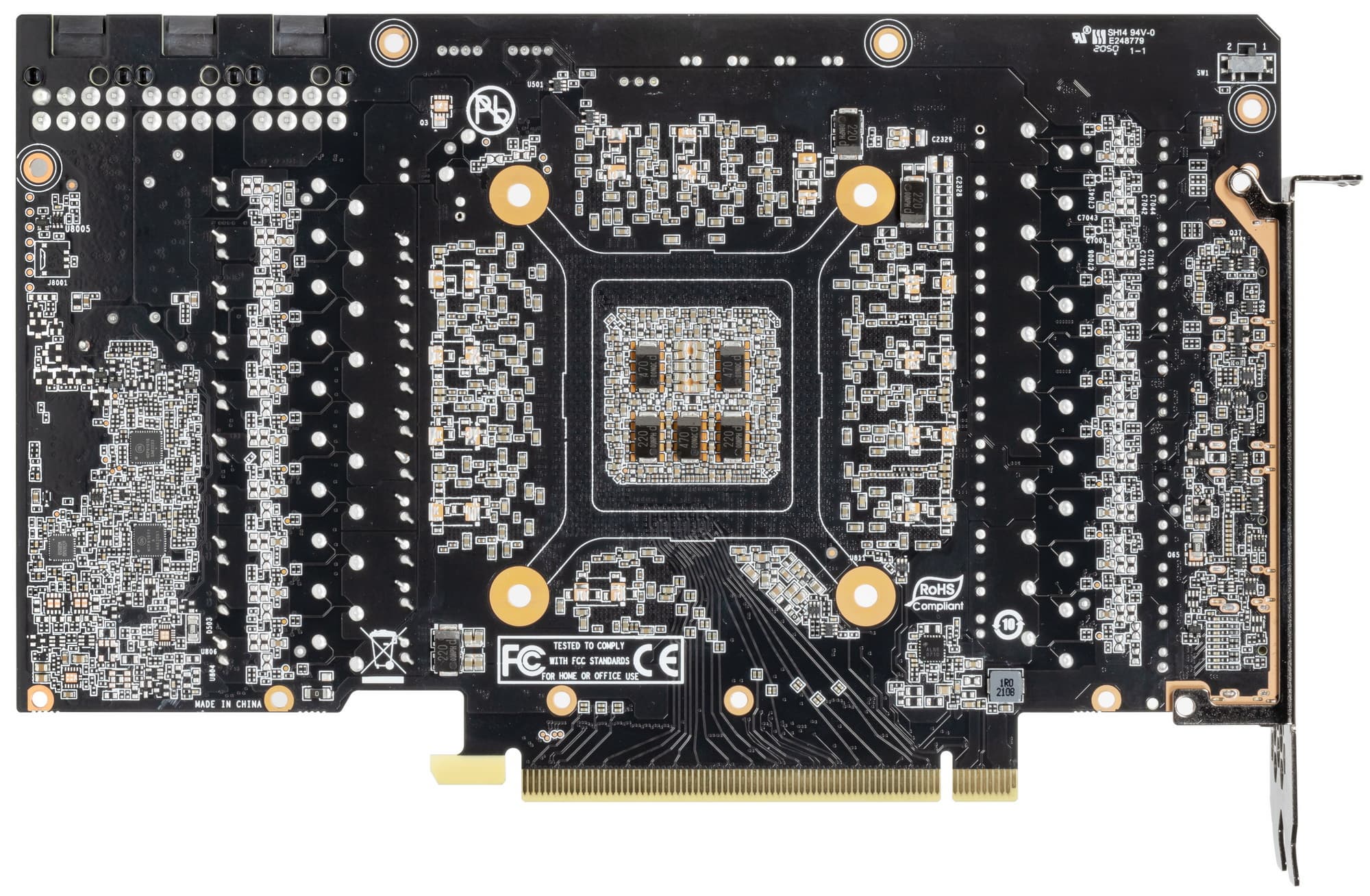 Напомню, что в свое время Nvidia сделали два варианта дизайна PCB: для своих карт Founders Edition и для партнеров, и карта Palit практически основана на втором варианте. Карта получилась в целом очень компактной, имея при этом шину обмена с памятью в 384 бит.