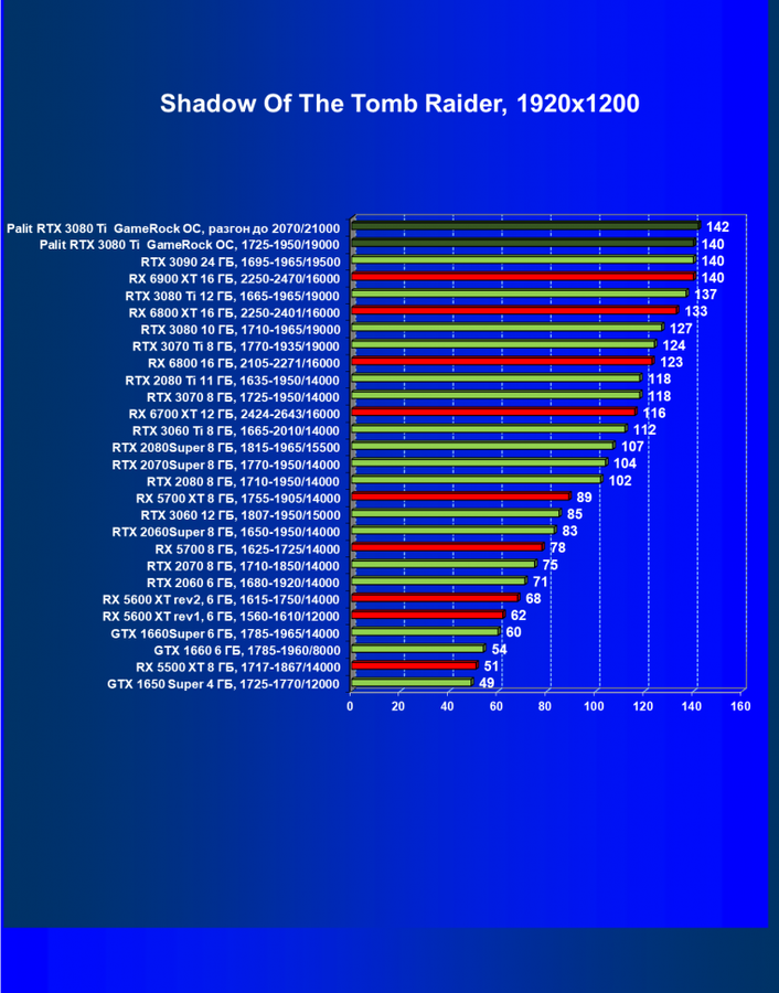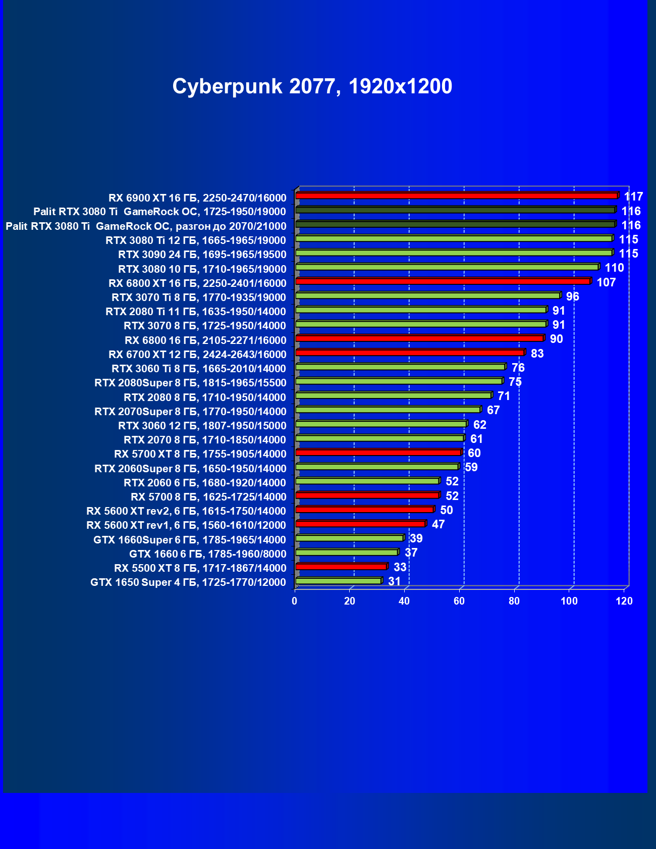 | 06 | RX 6800 XT 16 ГБ, 2015—2422/16000 | 11 | 174 | 160 000 |