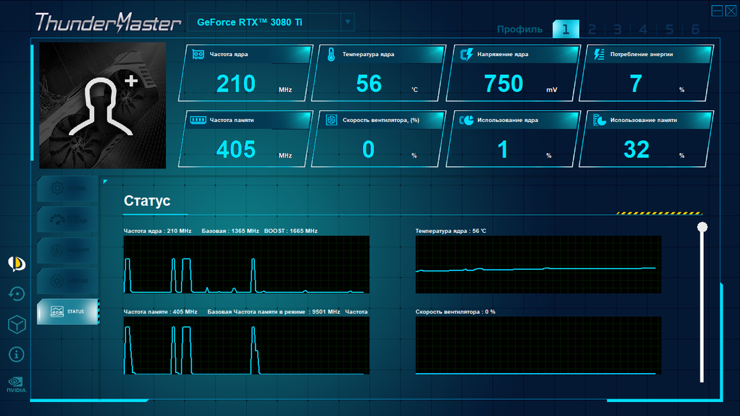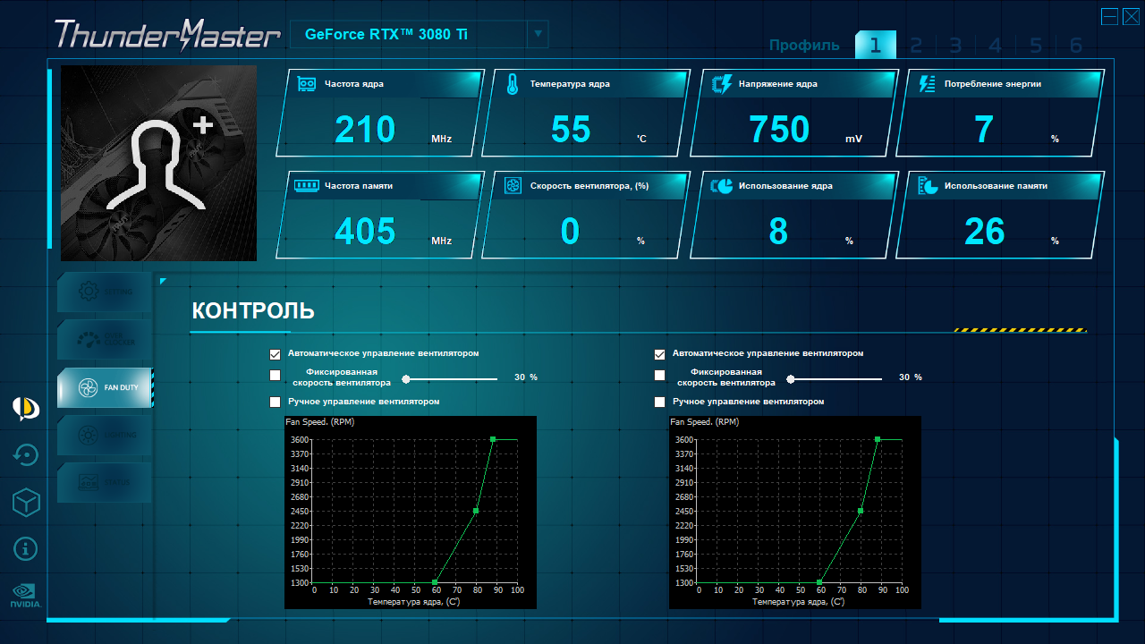 Управление работой карты обеспечивается силами фирменной утилиты Thunder Master v4.7.