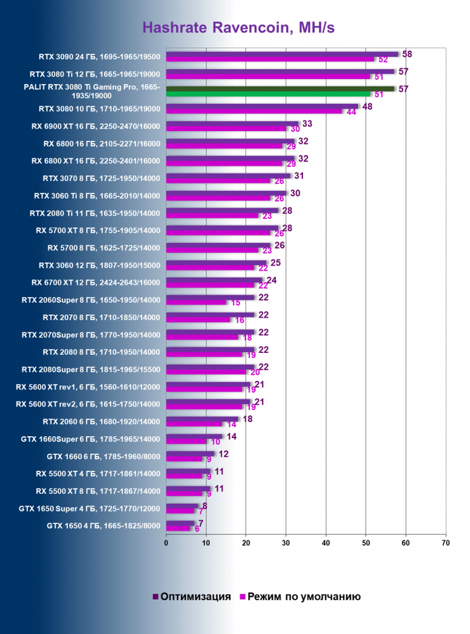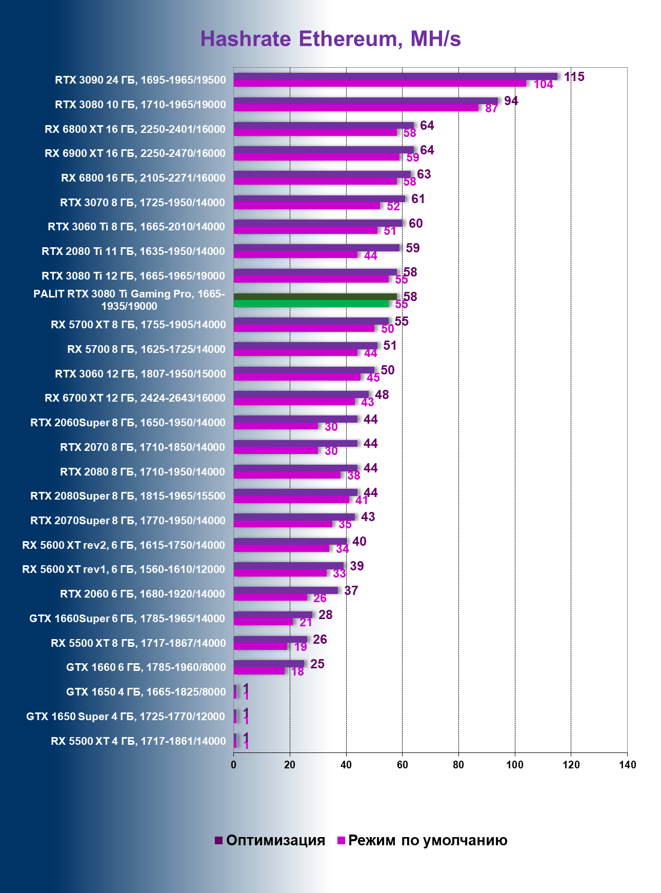 | 04 | Palit RTX 3080 Ti Gaming Pro, 1665—1935/19000 | 880 | 44 | 200 000 |