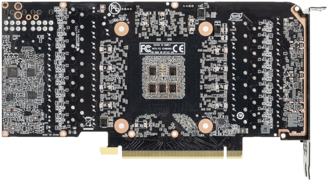 Напомню, что в свое время Nvidia сделали два варианта дизайна PCB: для своих карт Founders Edition и для партнеров, и карта Palit практически основана на втором варианте. Карта получилась в целом очень компактной, имея при этом шину обмена с памятью в 384 бит.