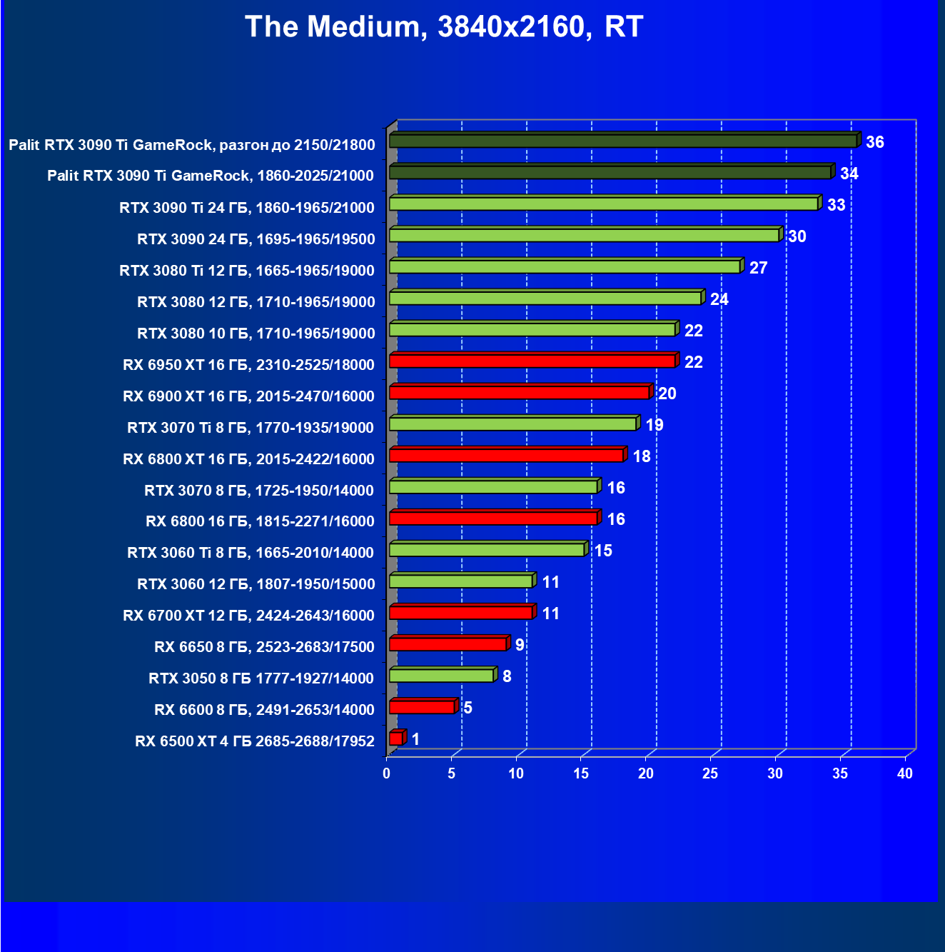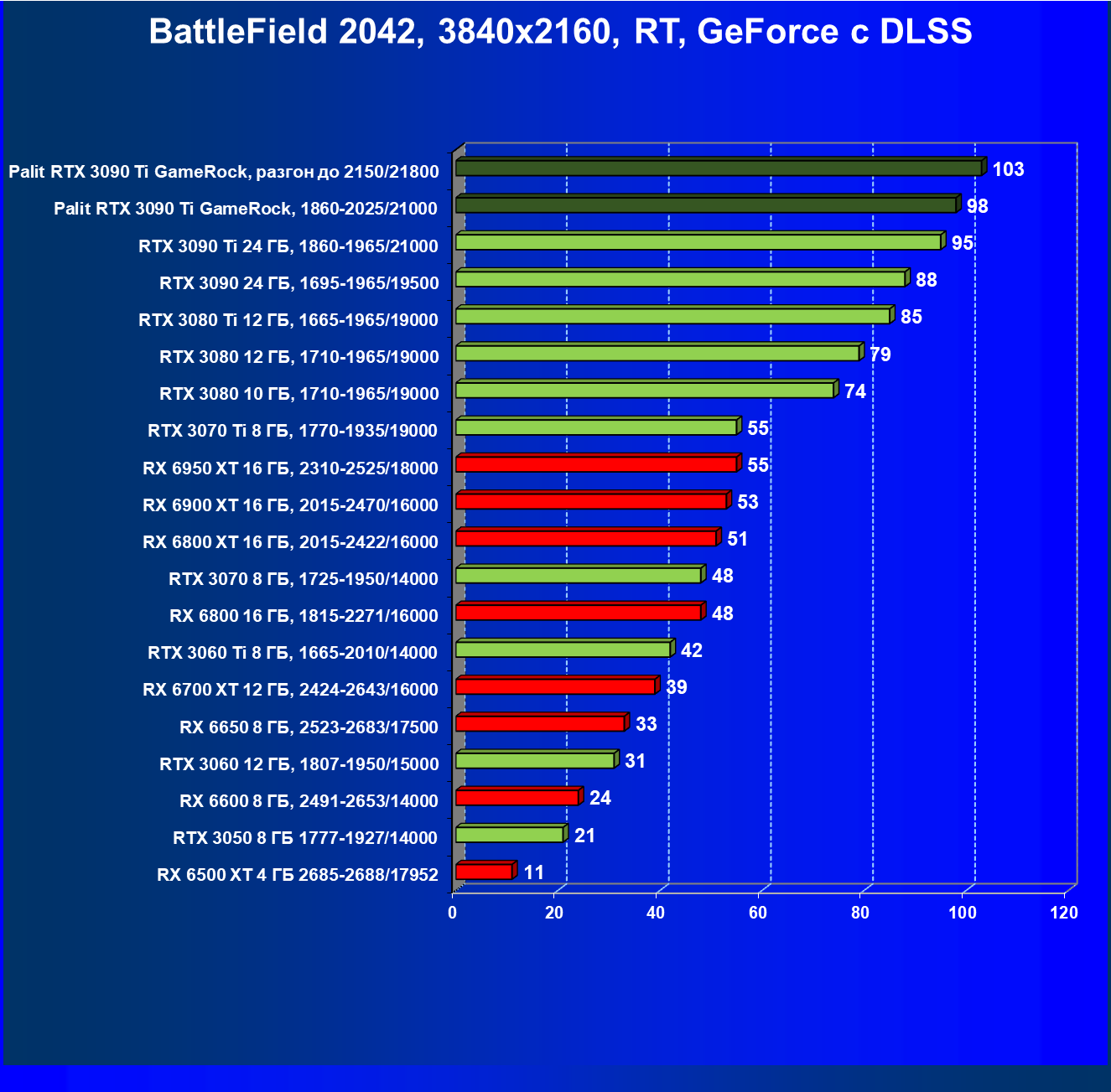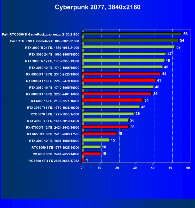| 01 | Palit RTX 3090 Ti GameRock, разгон до 2150/21800 | 480 | 33 | 147 000 |