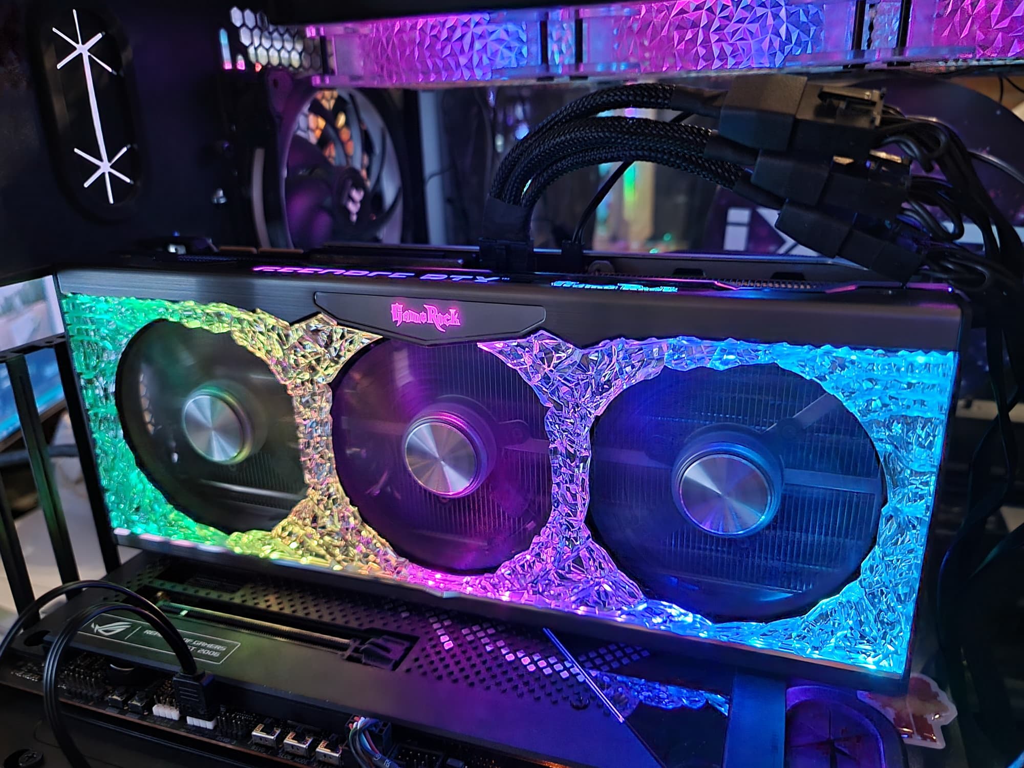 Это не новый тип подсветки, такой дизайн вышел в 2020 году с выходом RTX 30 в серии GameRock. Управление режимами подсветки, в том числе и ее отключением, осуществляется той же утилитой Thunder Master.
